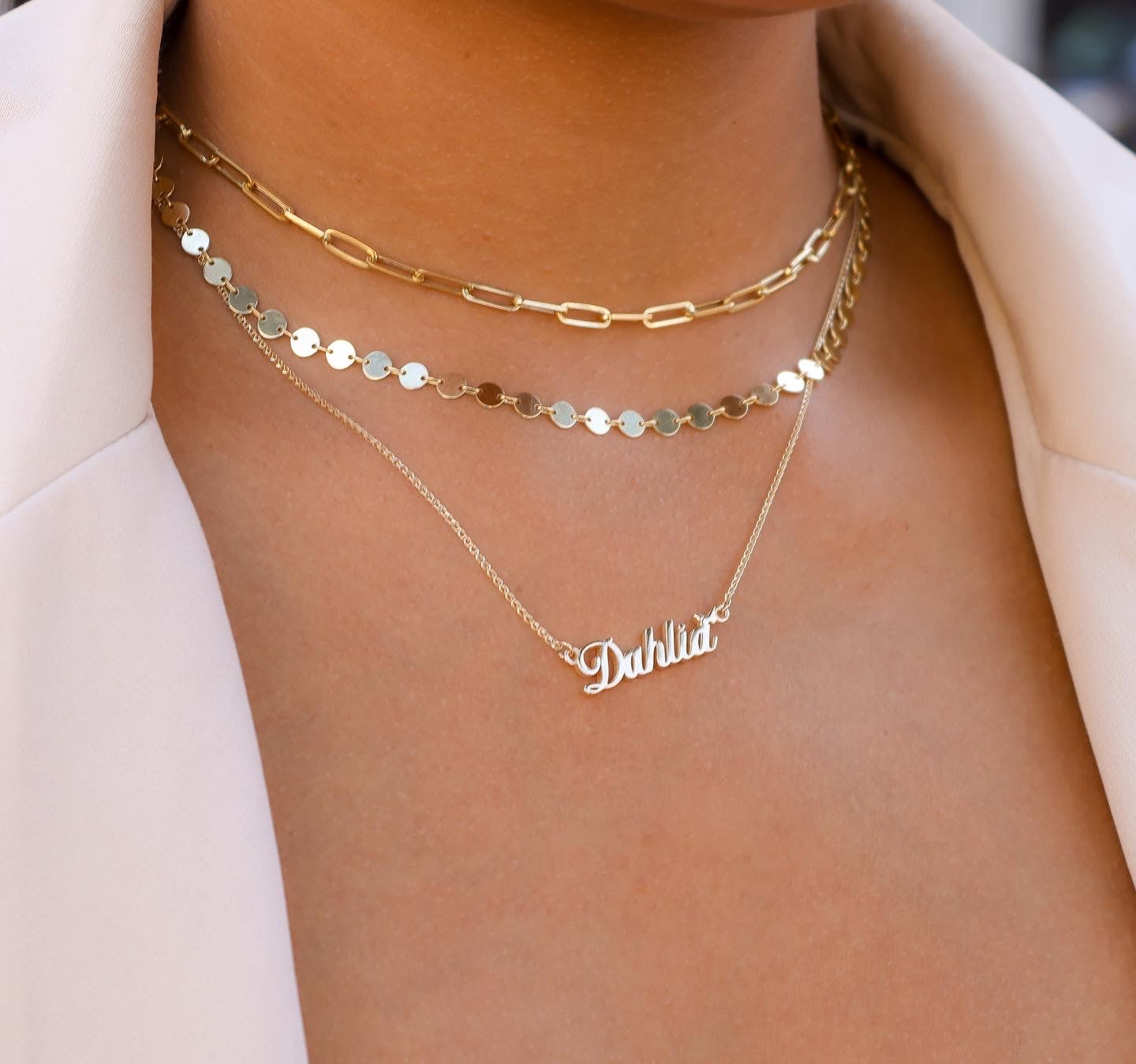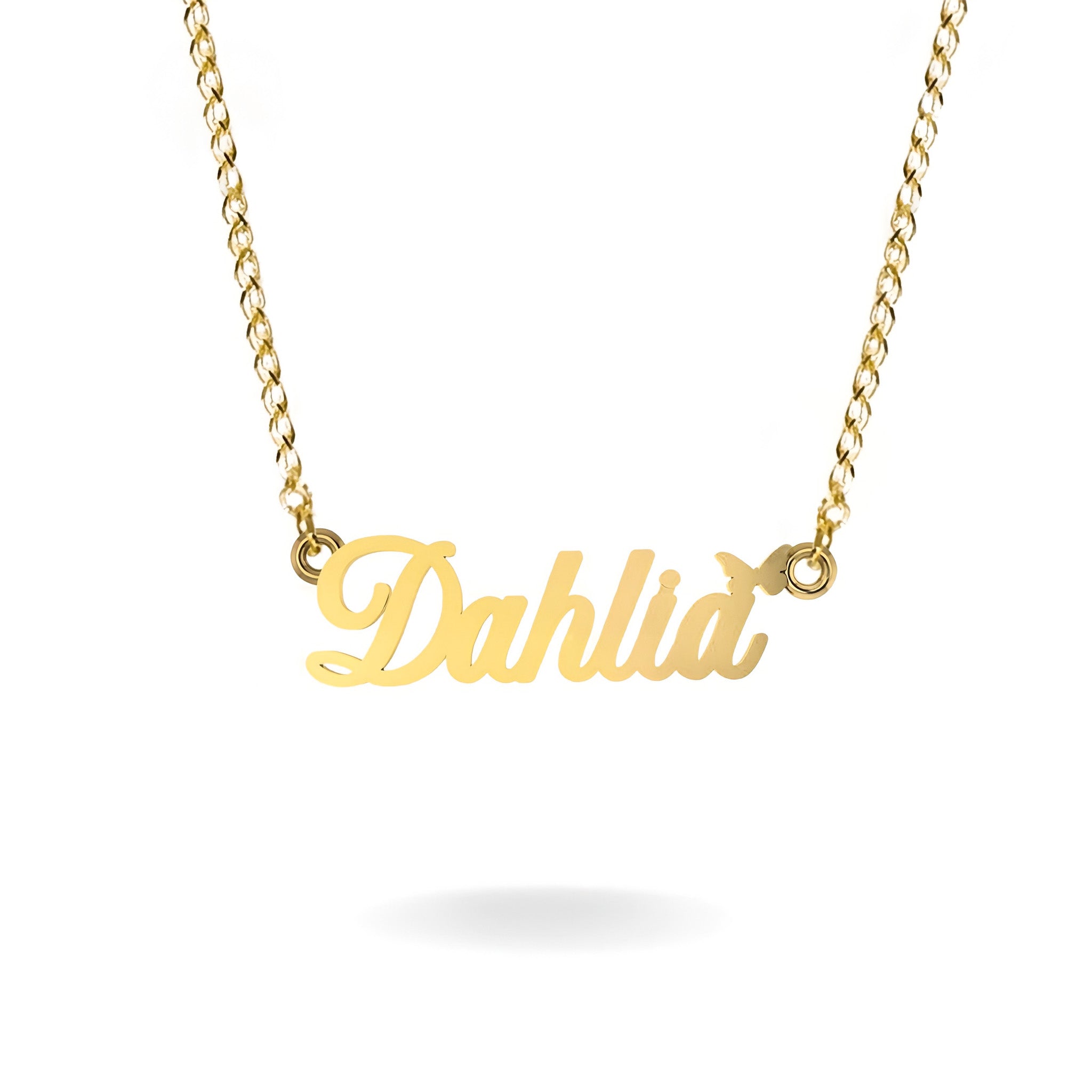 14K YELLOW GOLD BUTTERFLY KISS FLOATING MINI NAME NECKLACE
