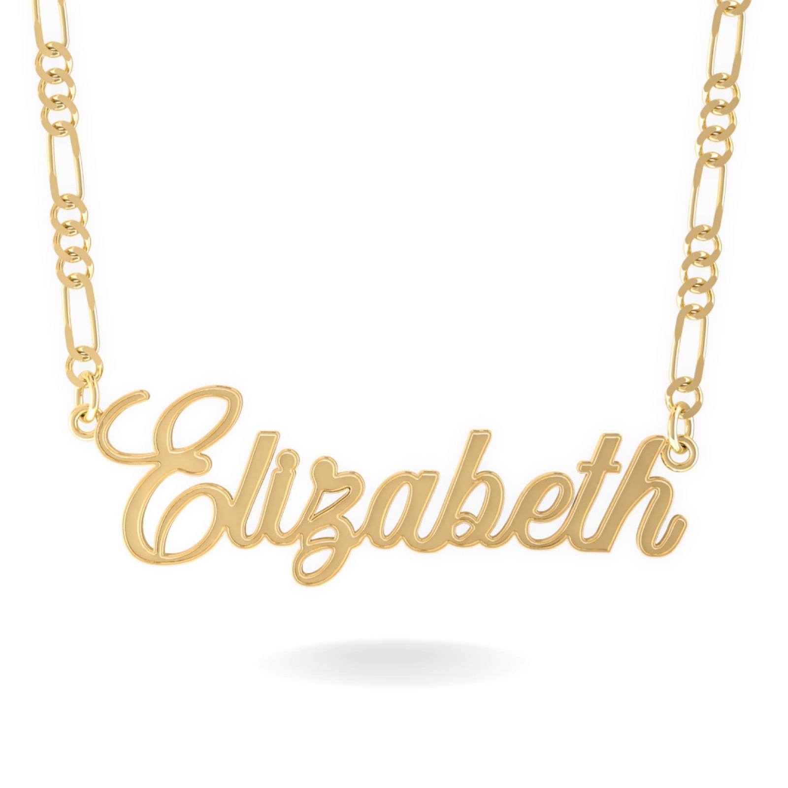 14K YELLOW GOLD FIGARO FLOATING SCRIPT BORDER NAME NECKLACE