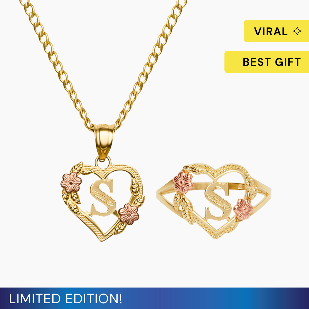 14K YELLOW GOLD MOST-LOVED SWEETHEART INITIAL NECKLACE + RING GIFT SET