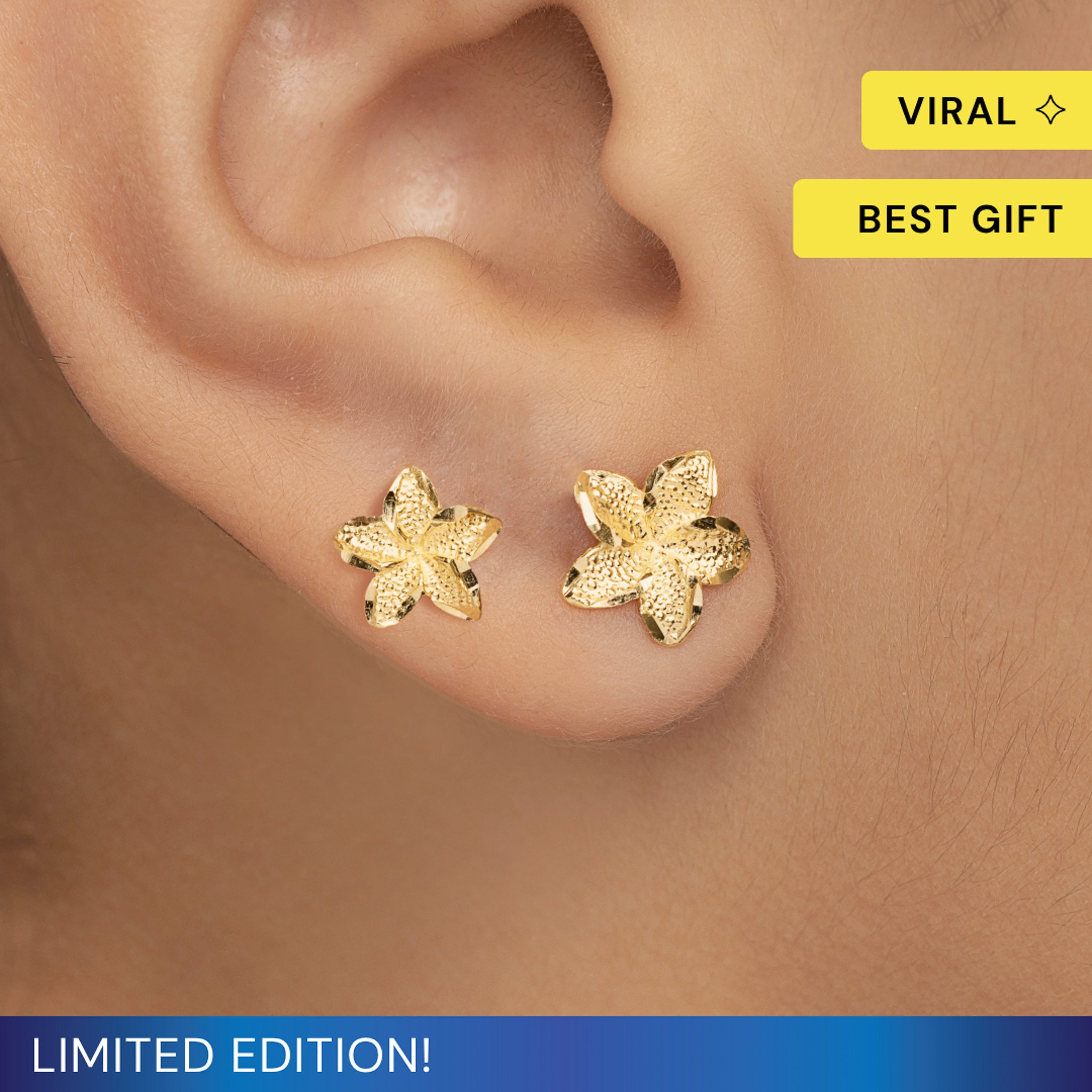 14K YELLOW GOLD POINSETTIA STUD EARRINGS GIFT SET