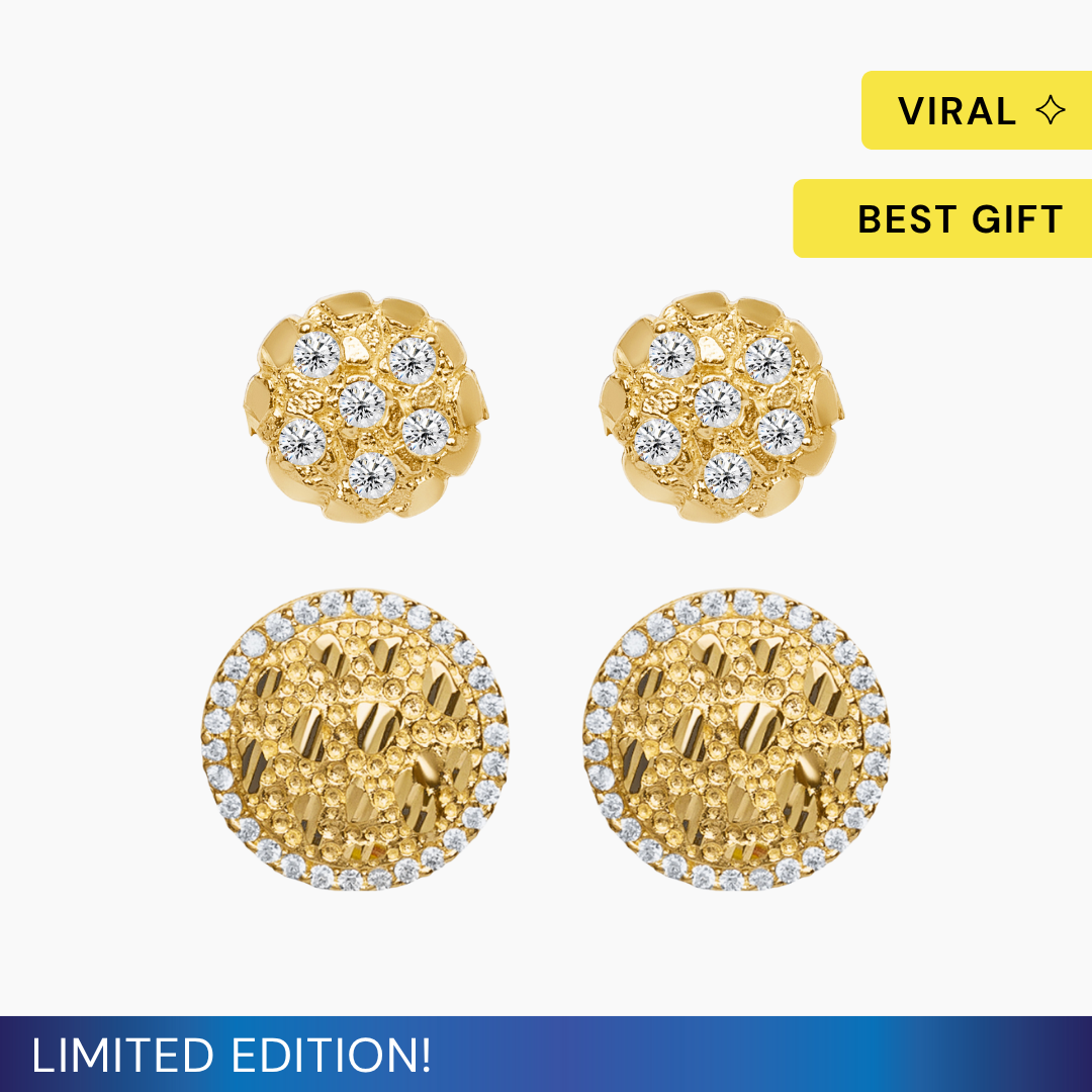 10K YELLOW GOLD ICY ROUND NUGGET EARRINGS GIFT SET