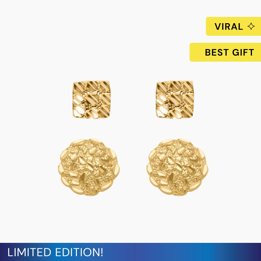10K YELLOW GOLD INTERNET FAVS NUGGET EARRINGS GIFT SET