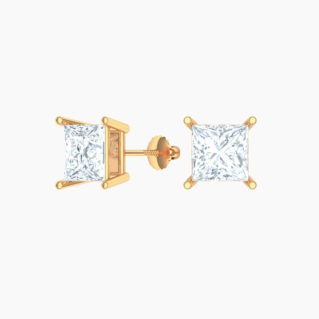 14K YELLOW GOLD FOUR PRONG PRINCESS LAB GROWN DIAMOND STUDS