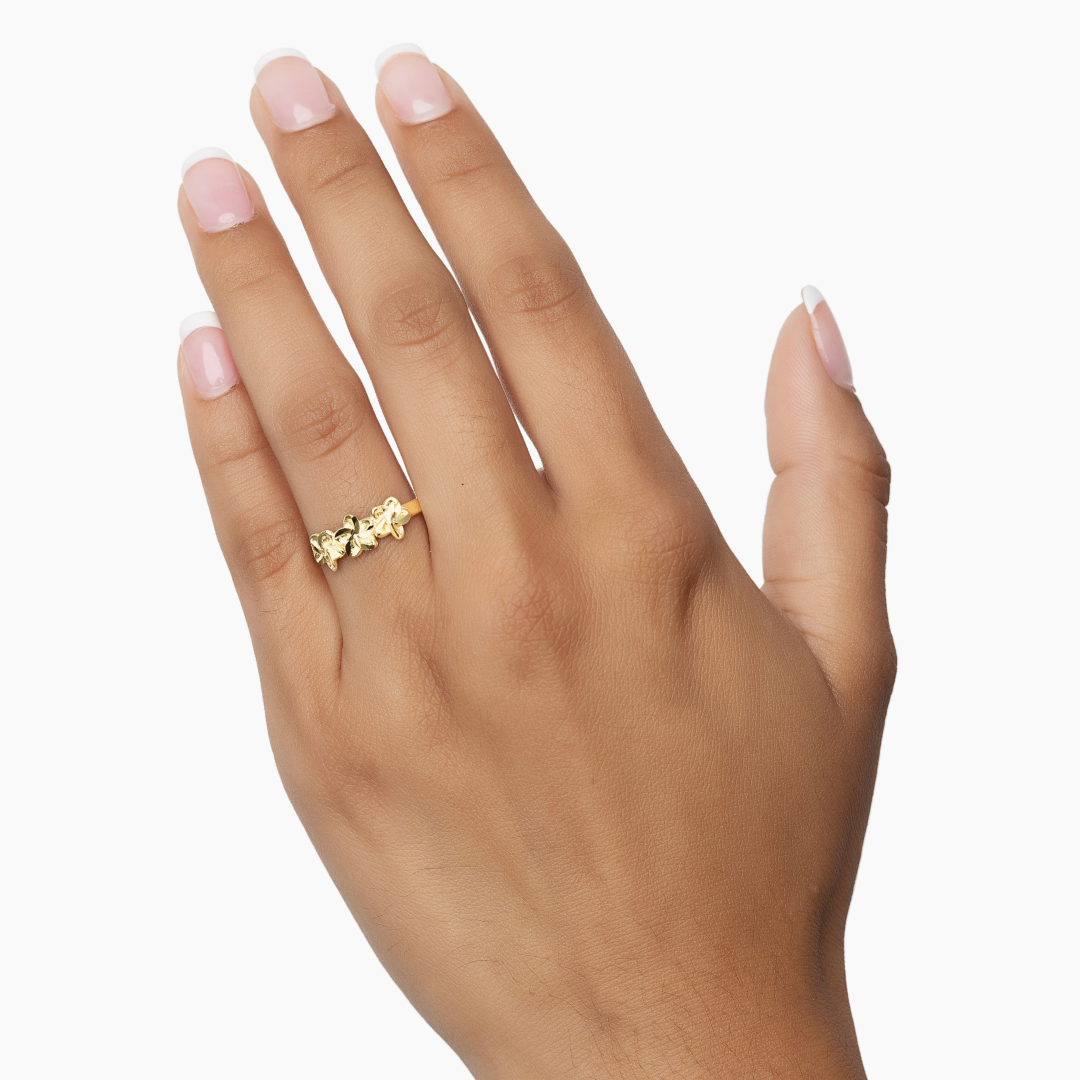14K YELLOW GOLD TRIPLE MINI PLUMERIA RING