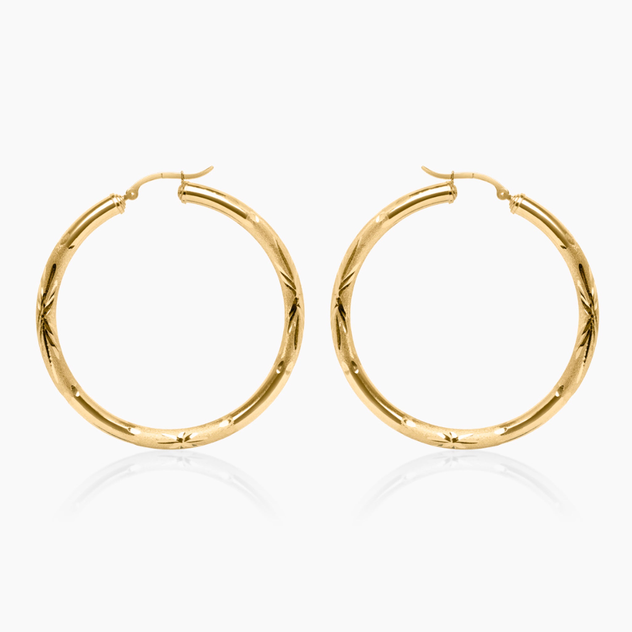 14K YELLOW GOLD LARGE ETCHED HOOPS