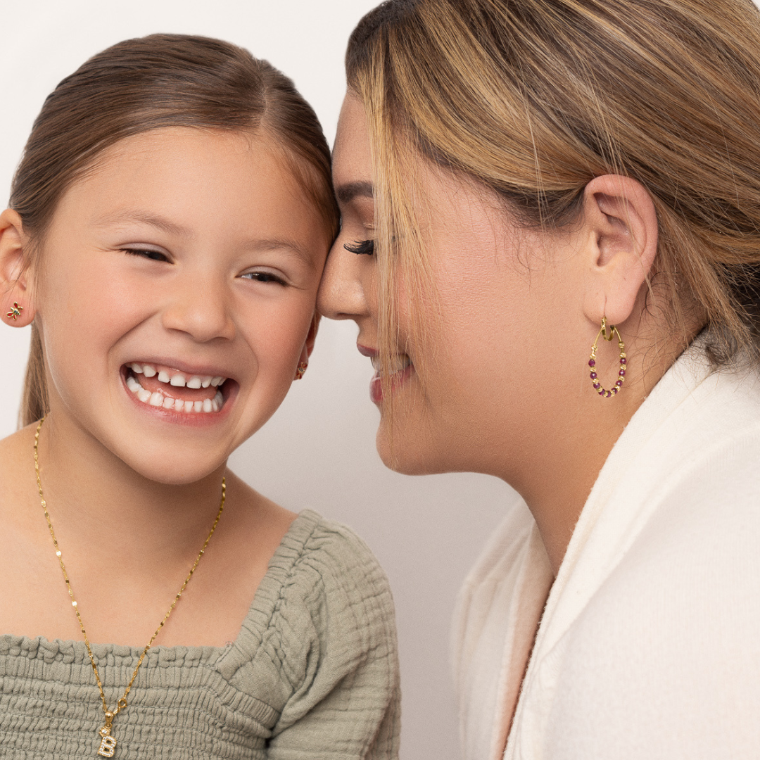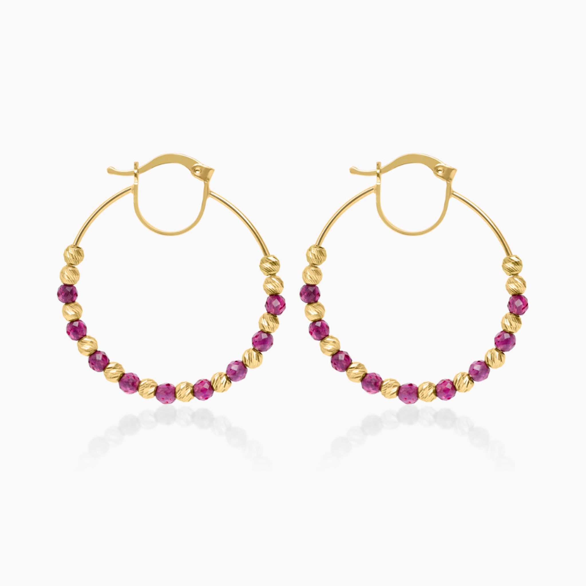 14K YELLOW GOLD RED BEADED HOOPS