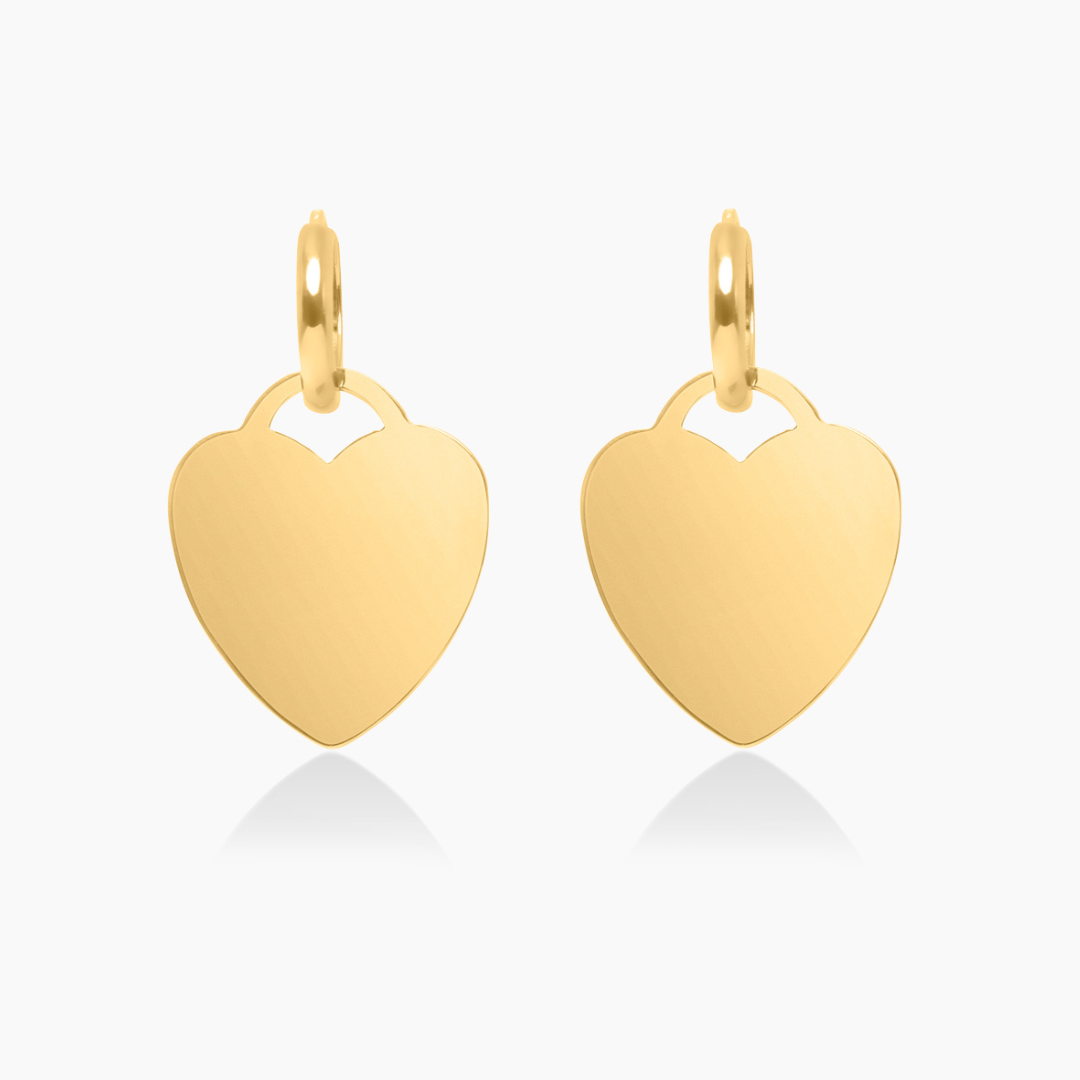 14K YELLOW GOLD HEART MIRROR DROP HUGGIES