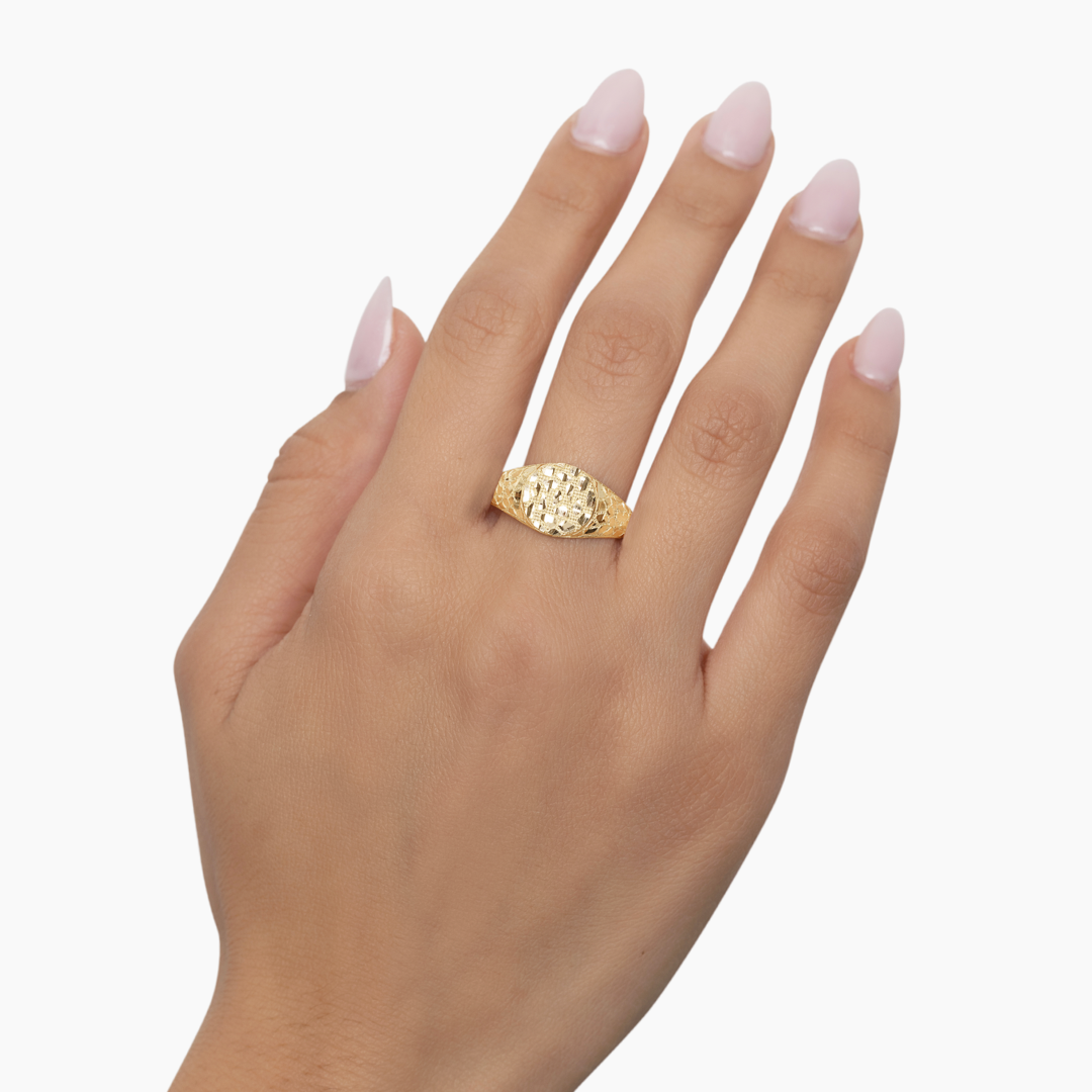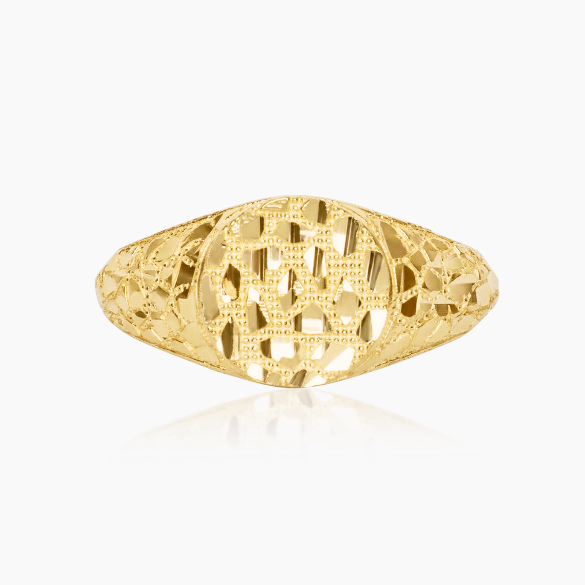 10K YELLOW GOLD NUGGET SIGNET RING -10.5MM
