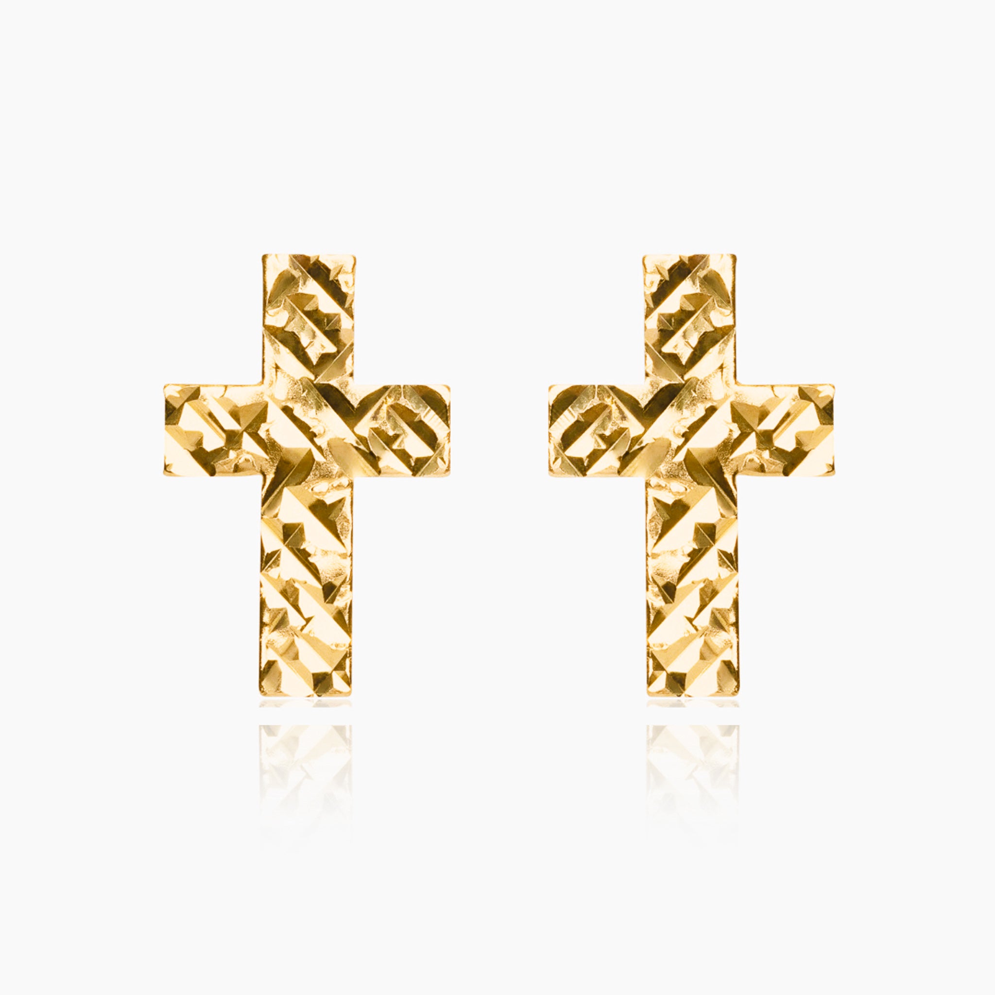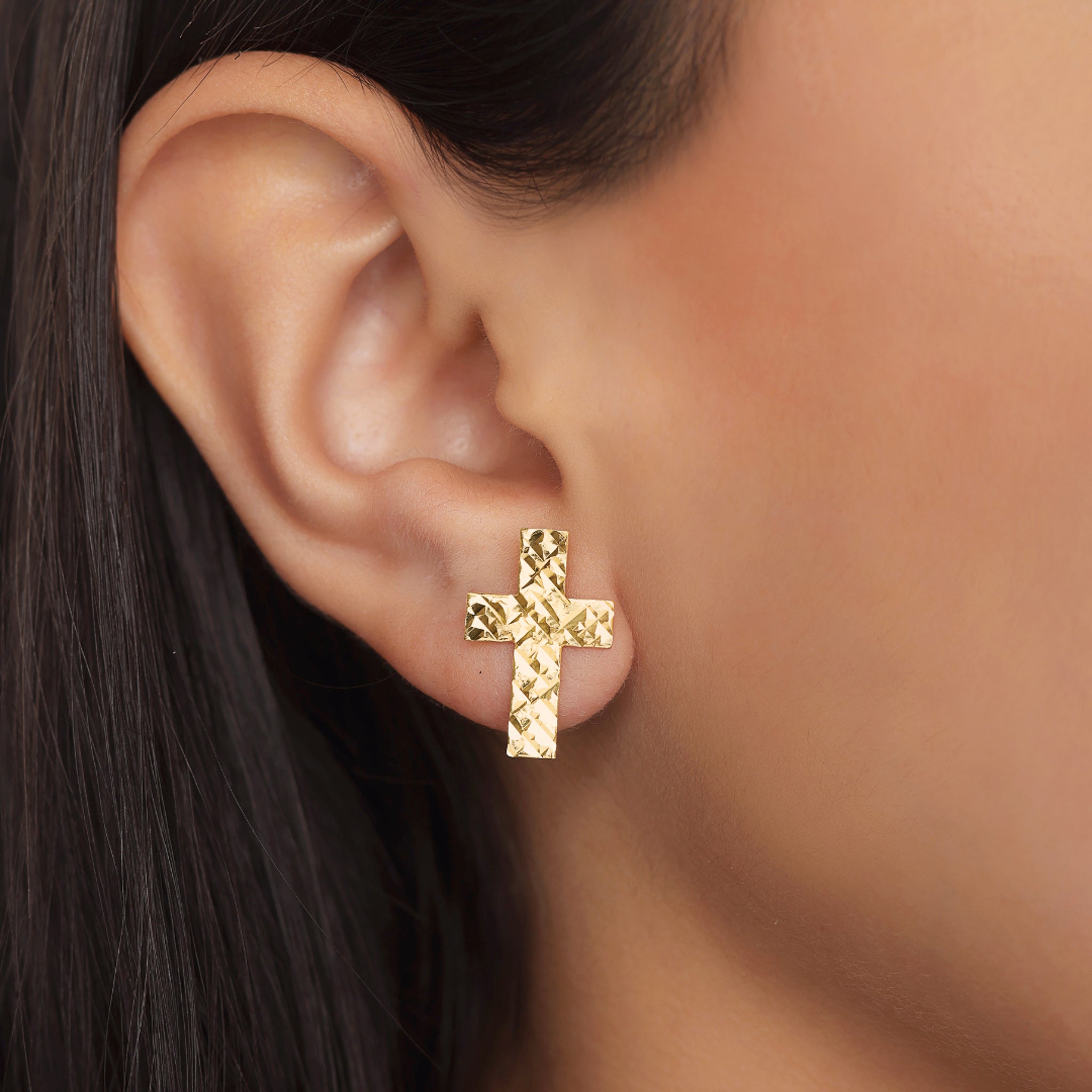 10K YELLOW GOLD NUGGET FLAT CROSS STUD EARRINGS