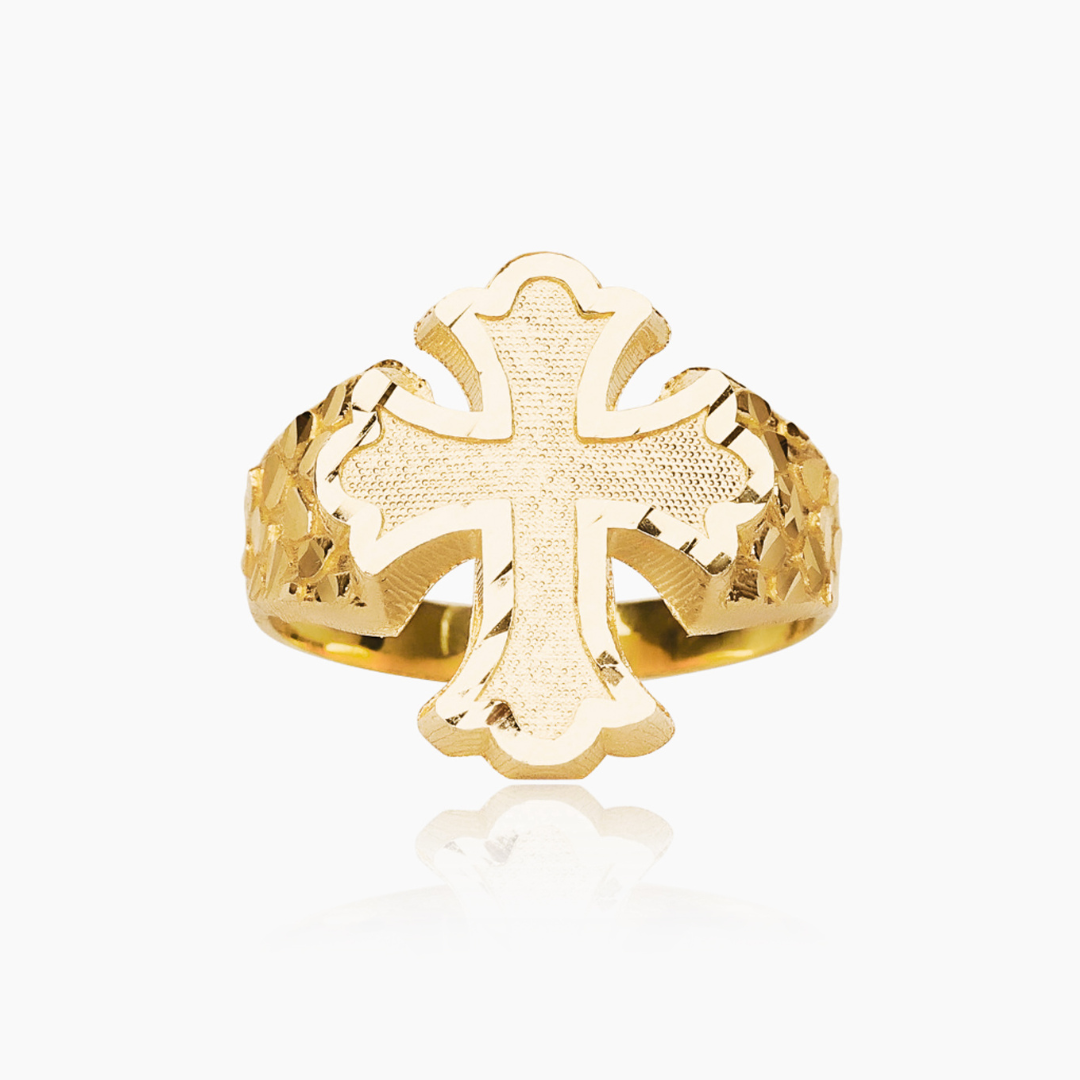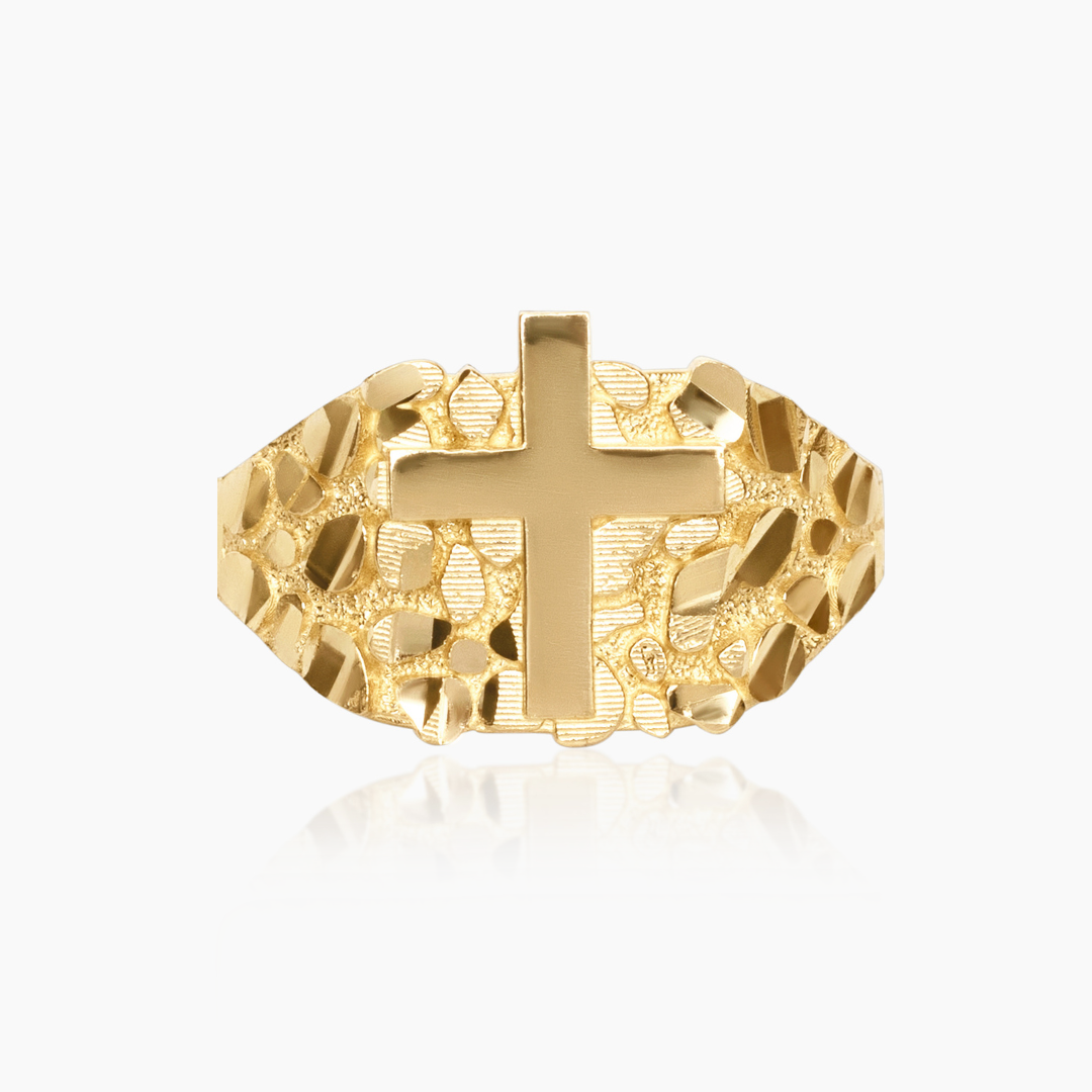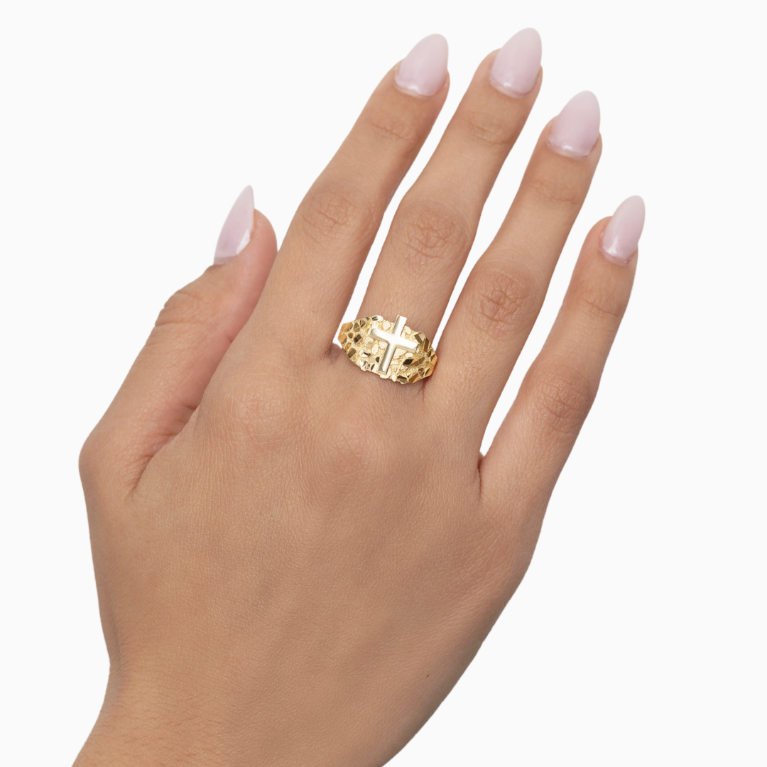 10K YELLOW GOLD CHISELED CROSS NUGGET RING