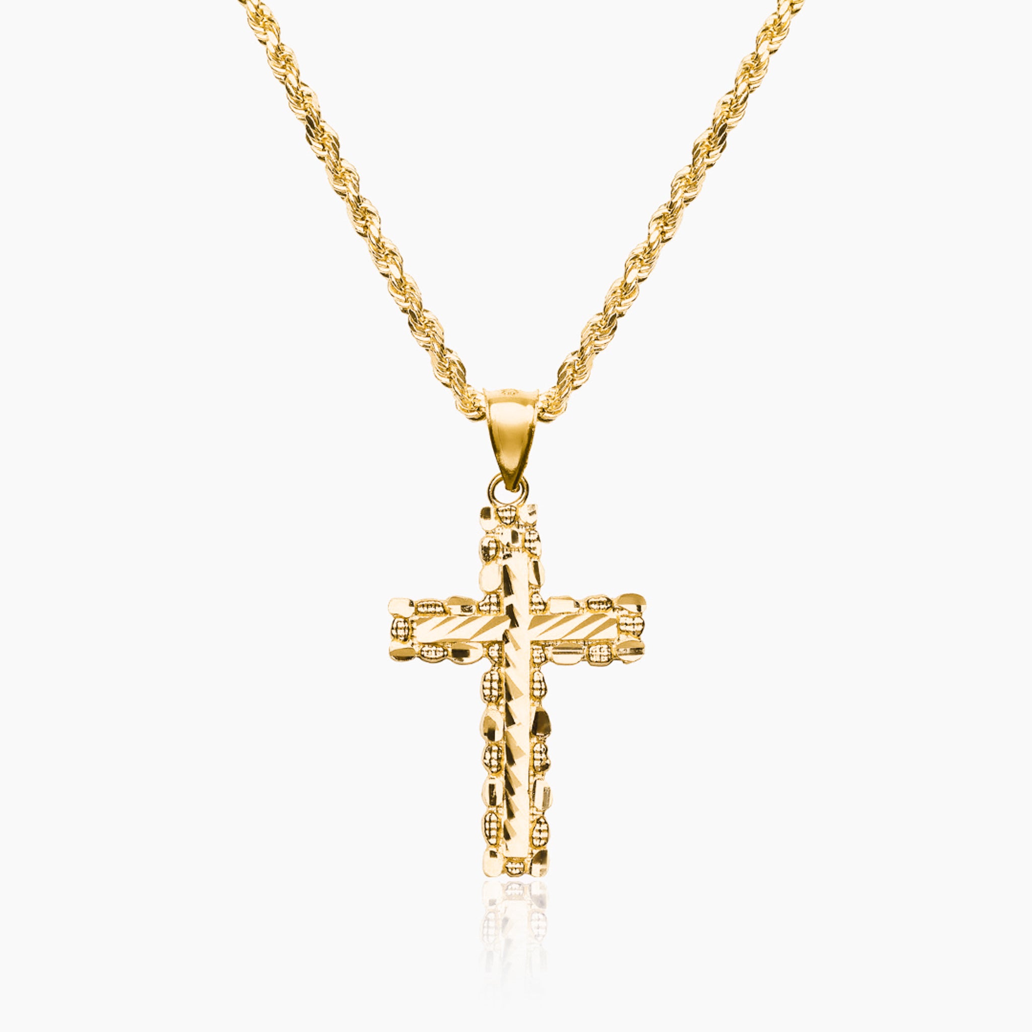 14K YELLOW GOLD CRUSHED ICE CROSS NECKLACE