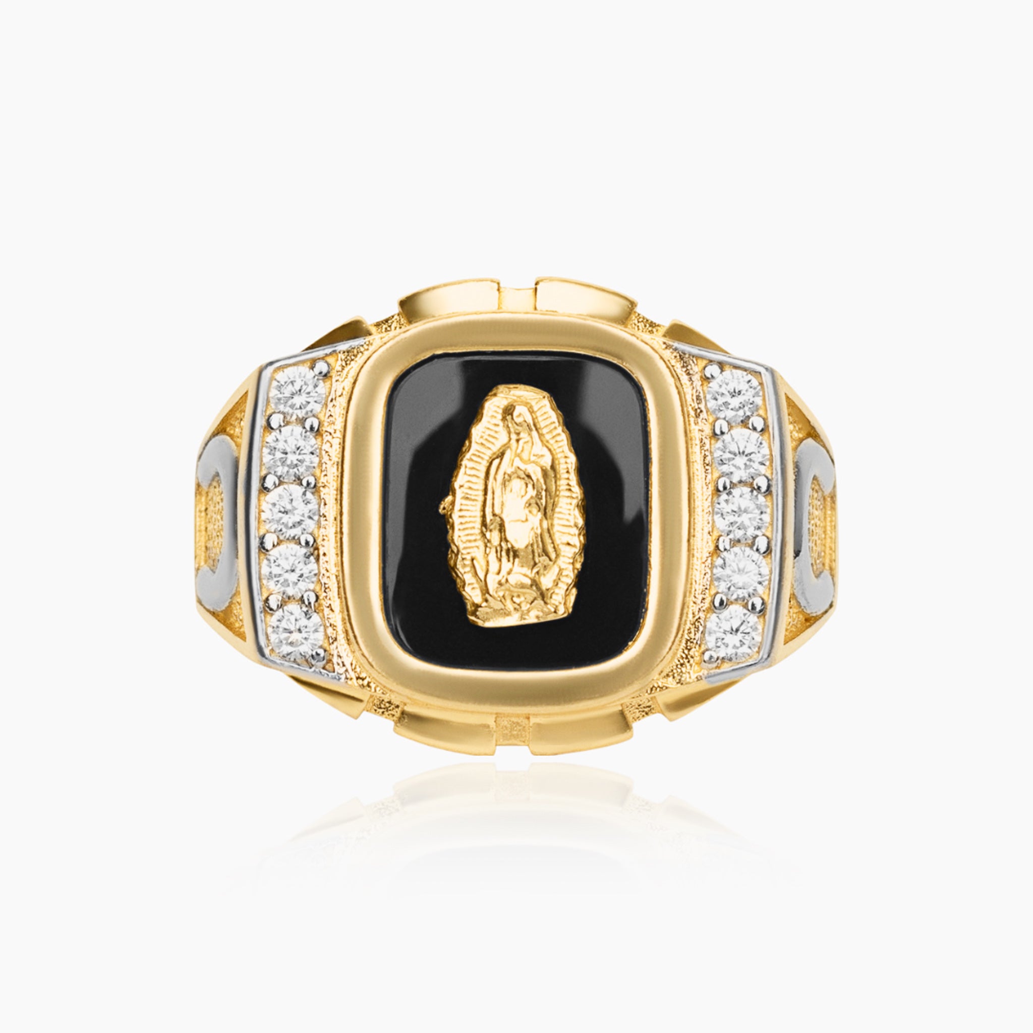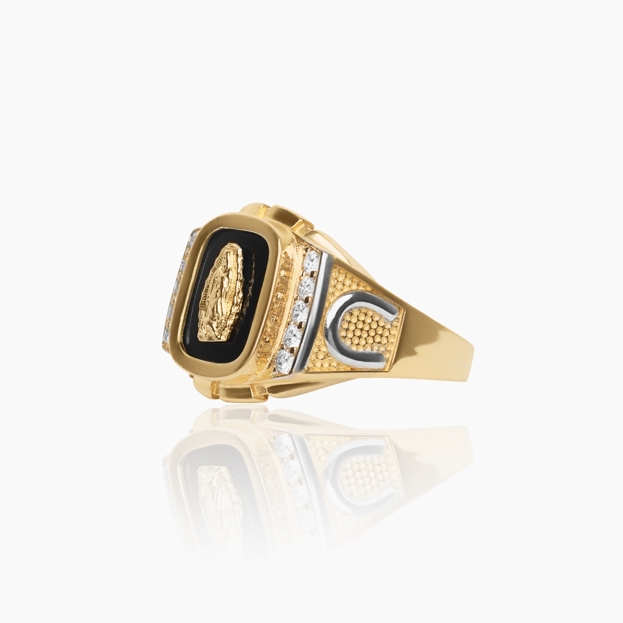 14K YELLOW GOLD VIRGIN MARY BLACK ONYX SIGNET RING