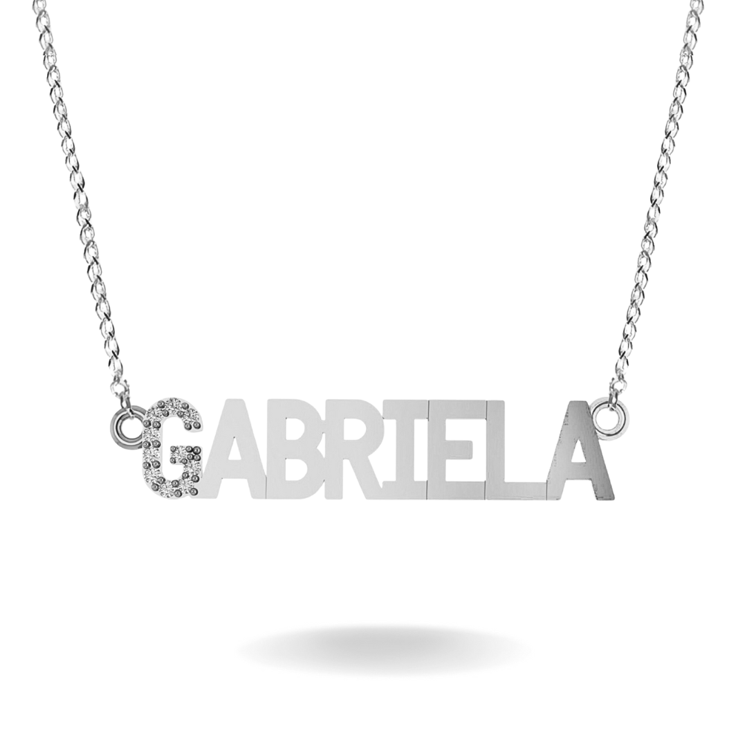 14K WHITE GOLD SPOTLIGHT LETTER SERIF MINI NAME NECKLACE