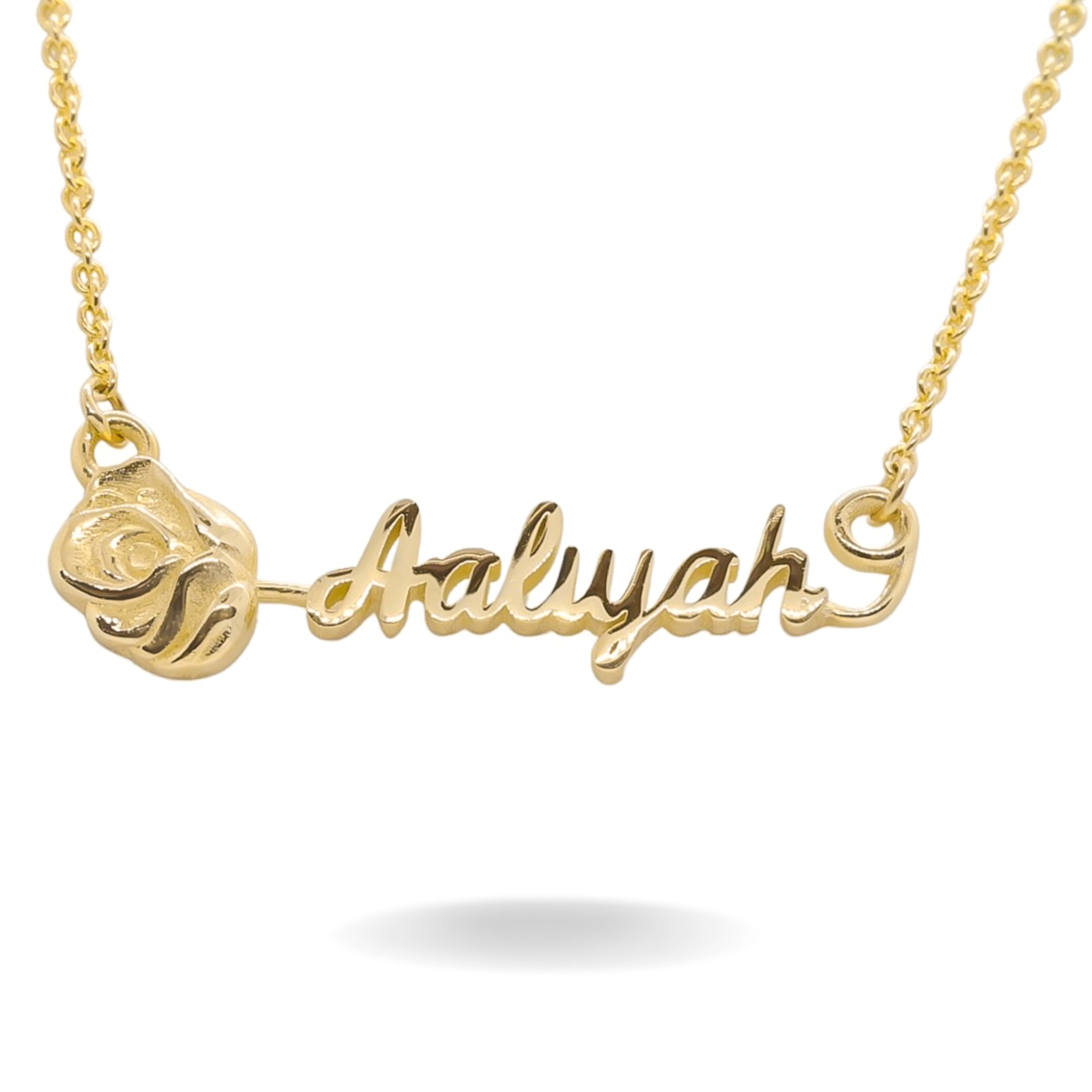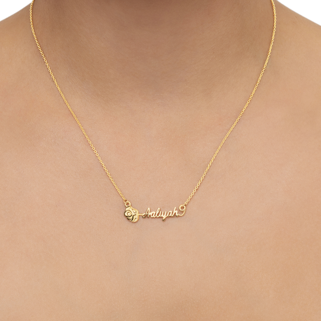 14K YELLOW GOLD ROSE SCRIPT NAME NECKLACE