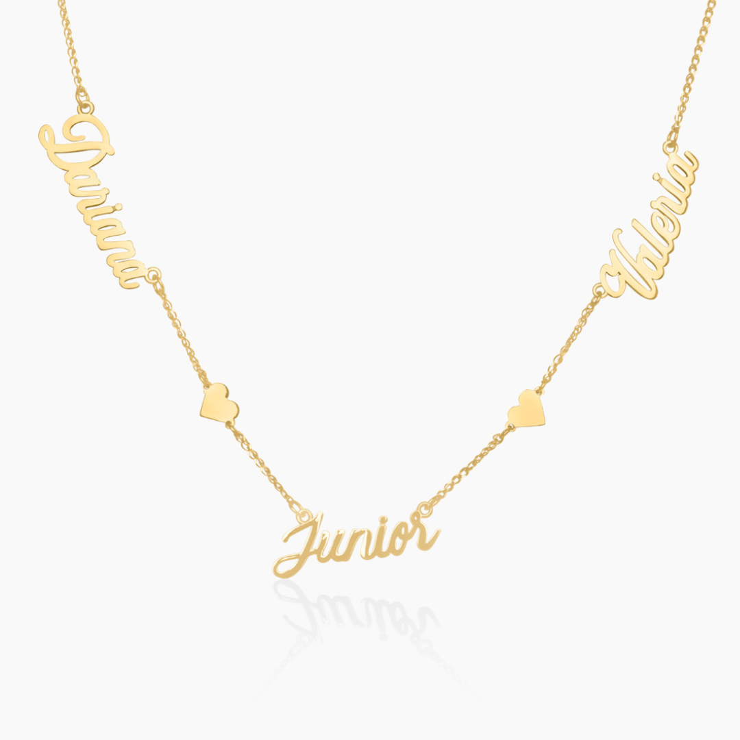 14K YELLOW GOLD WITH LOVE TRIPLE NAME NECKLACE