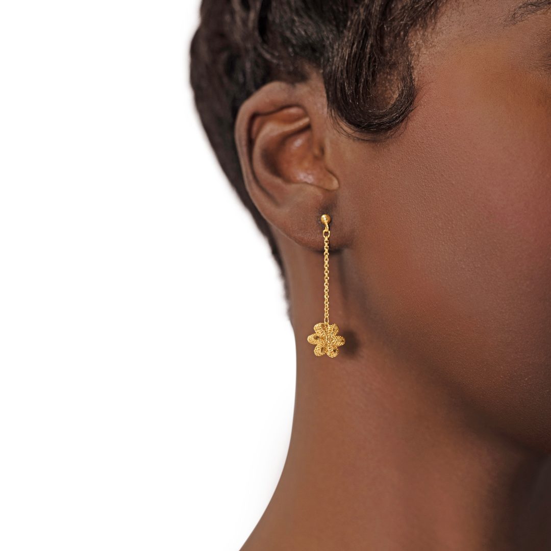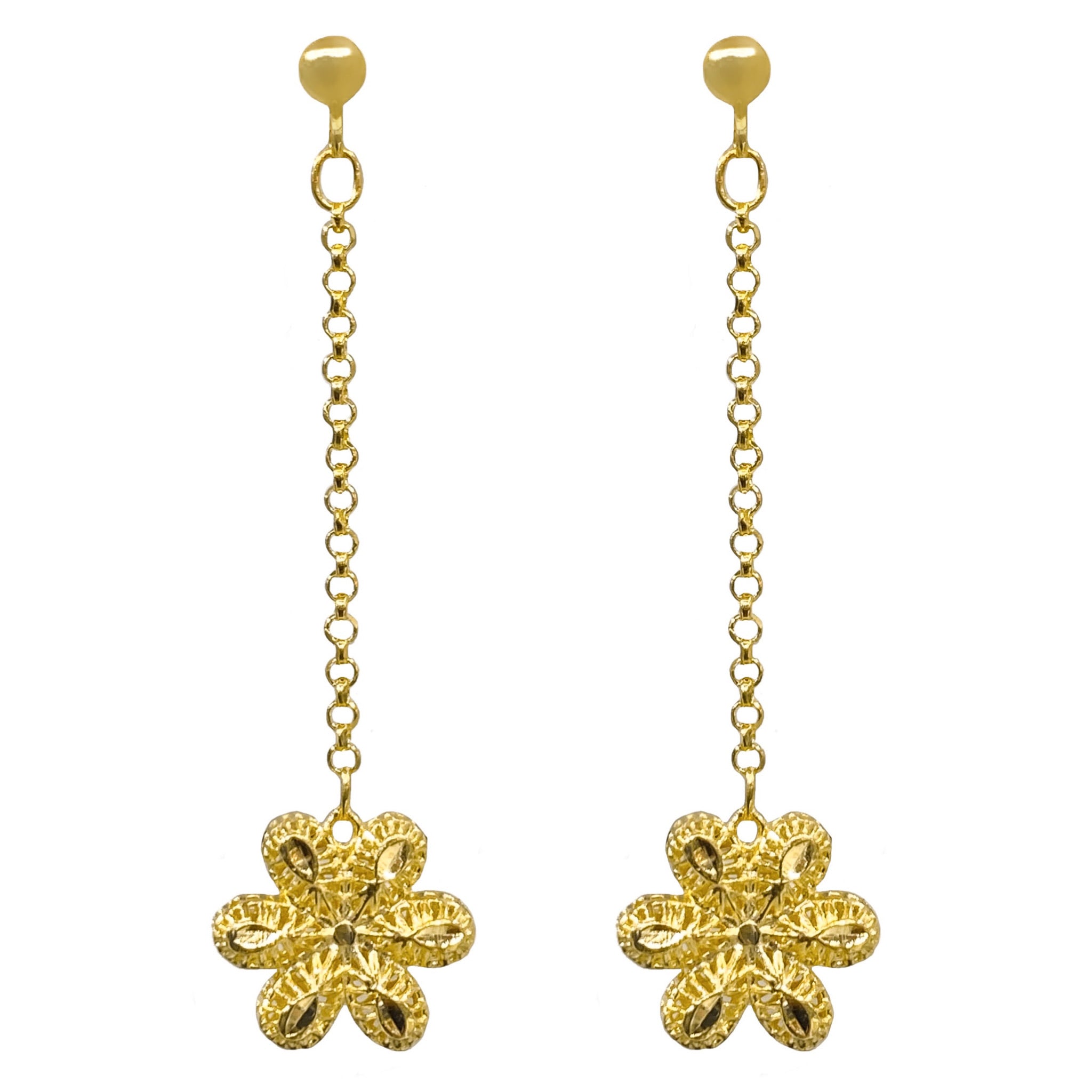 10K YELLOW GOLD FILIGREE FLOWER DROP EARRINGS