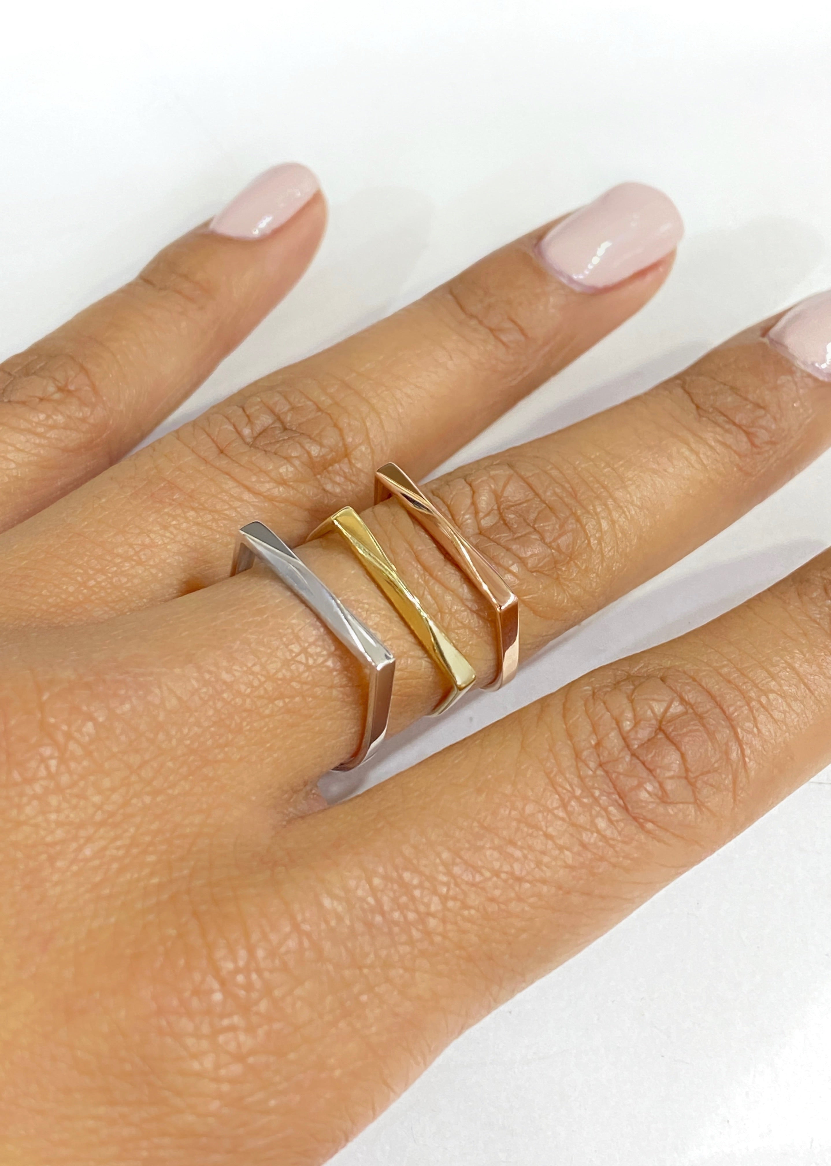 14K TRI COLOR GOLD PINCHED BAR RING SET