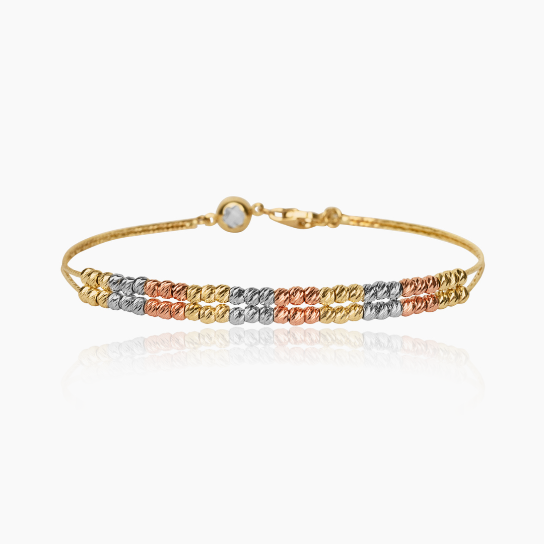 14K TRI COLOR GOLD DOUBLE ROW MOON-CUT BEADS BANGLE