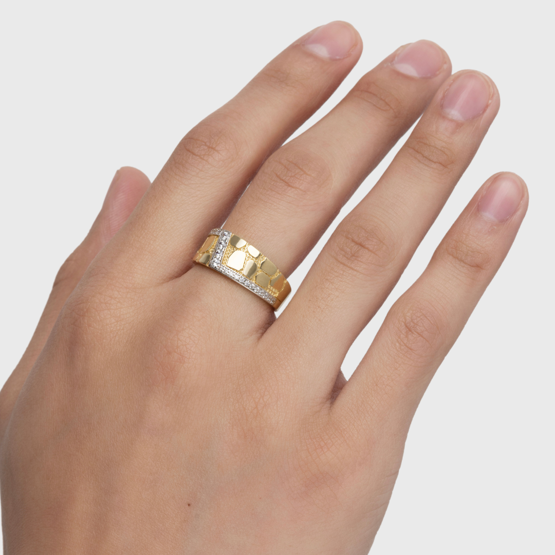14K YELLOW GOLD PAVE SPLIT NUGGET RING