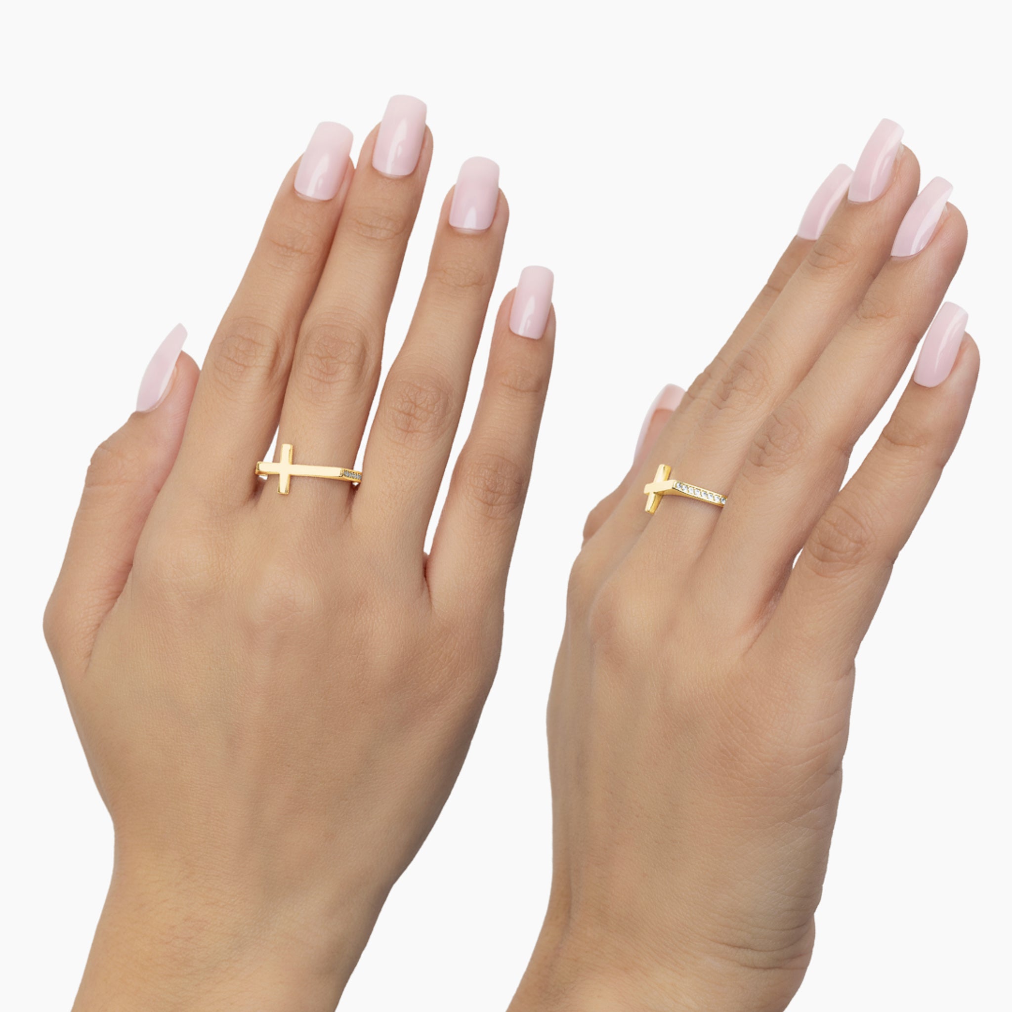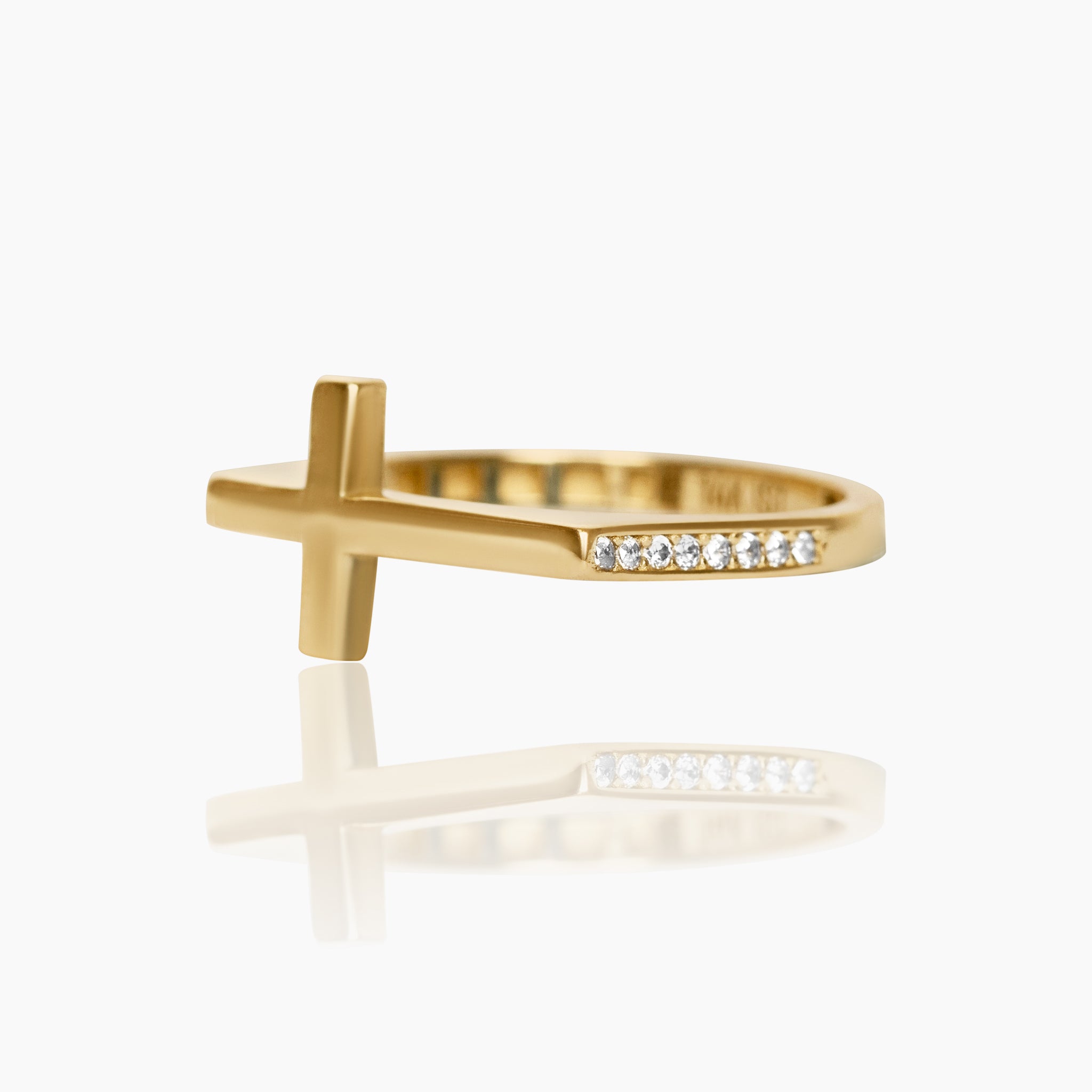 14K YELLOW GOLD HORIZON CROSS PAVE RING