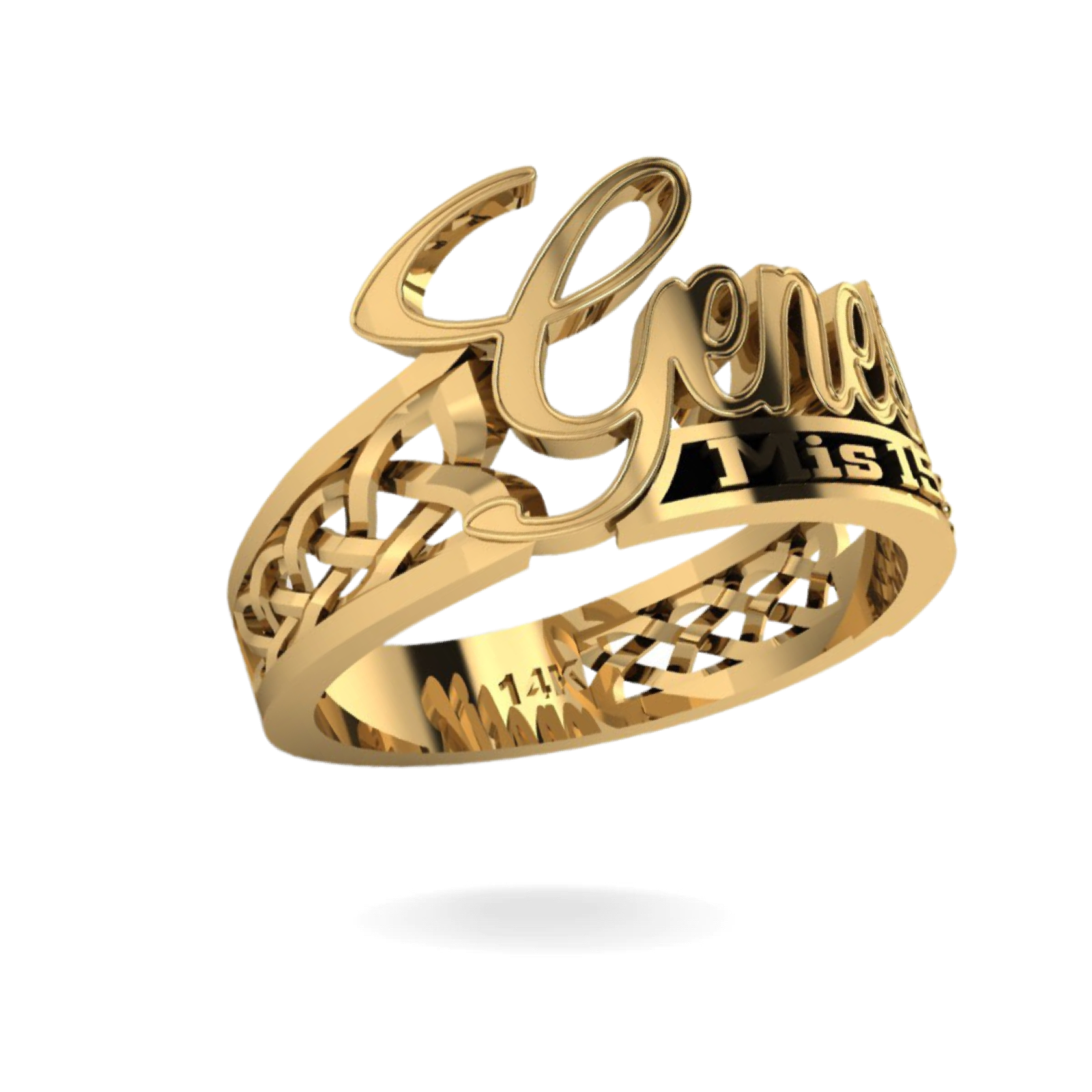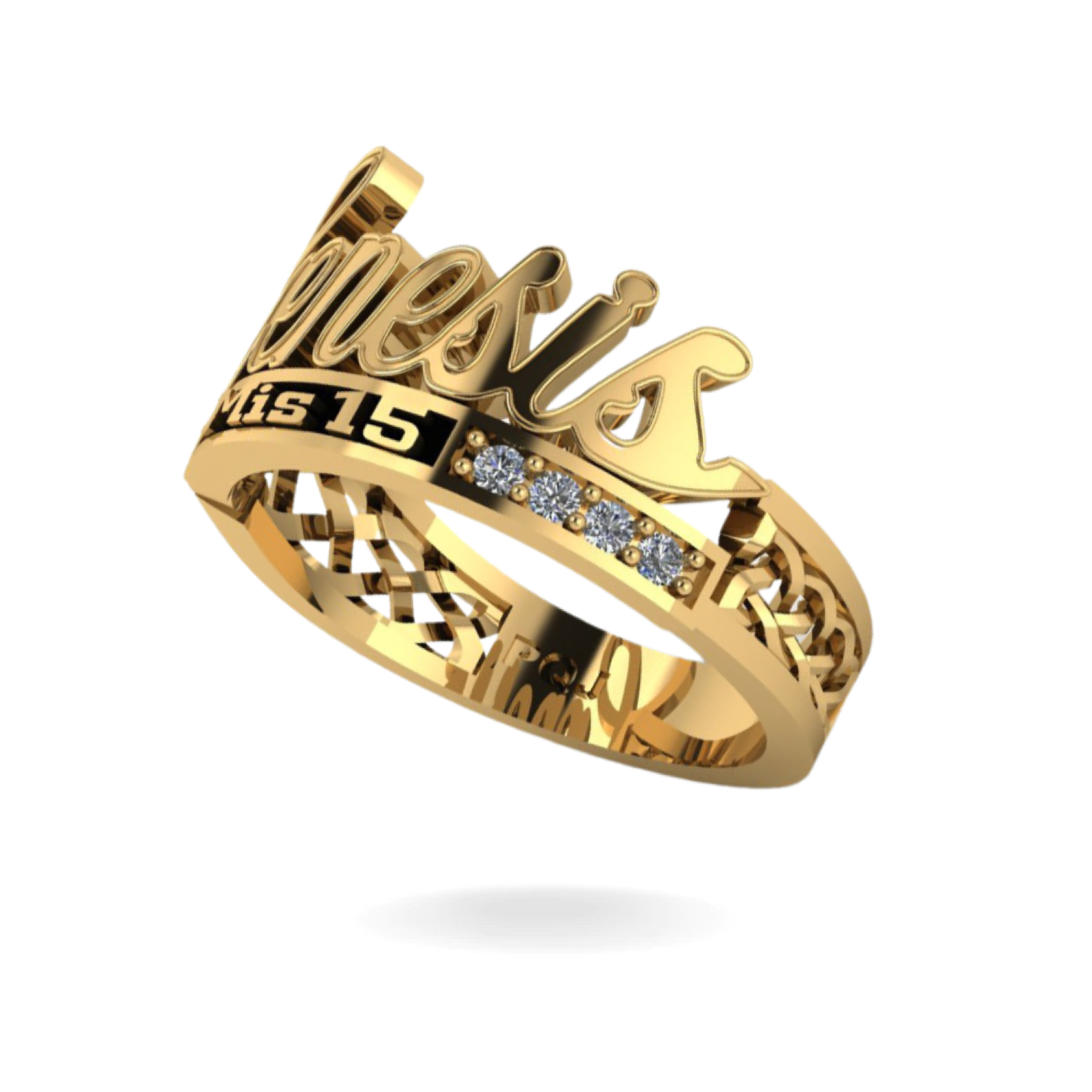 14K YELLOW GOLD CUSTOM MÍS 15 NAME RING