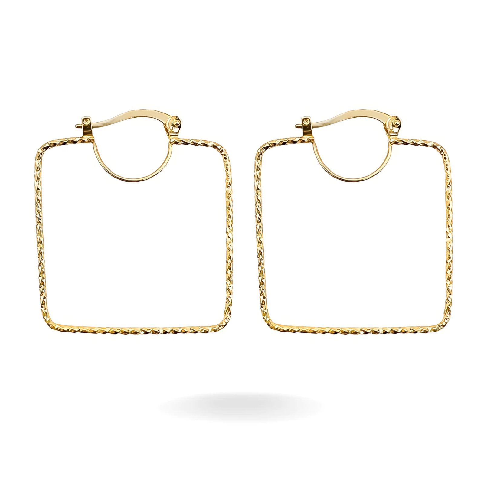 14K YELLOW GOLD DIAMOND CUT DAINTY SQUARE HOOPS