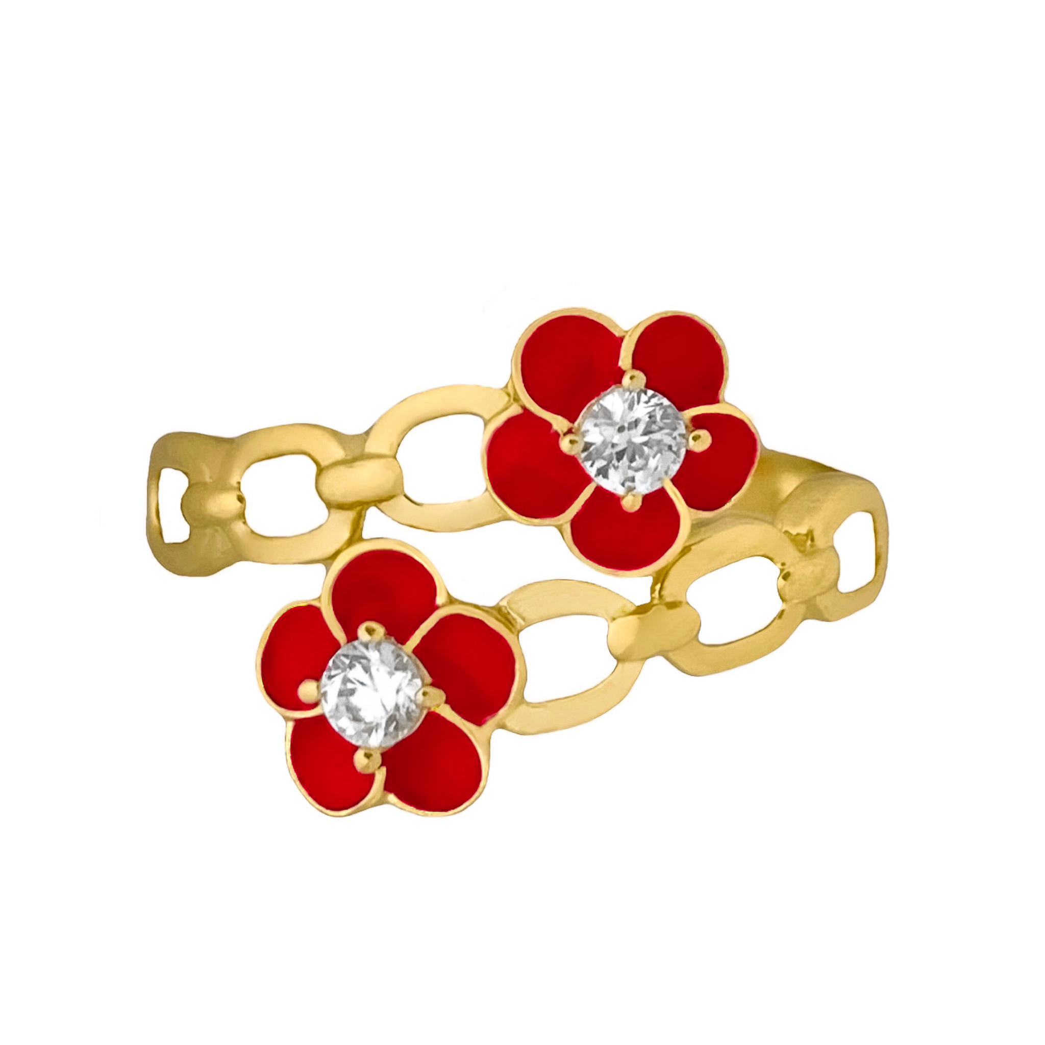 - 14K YELLOW GOLD RED FLOWER LINK WRAP RING