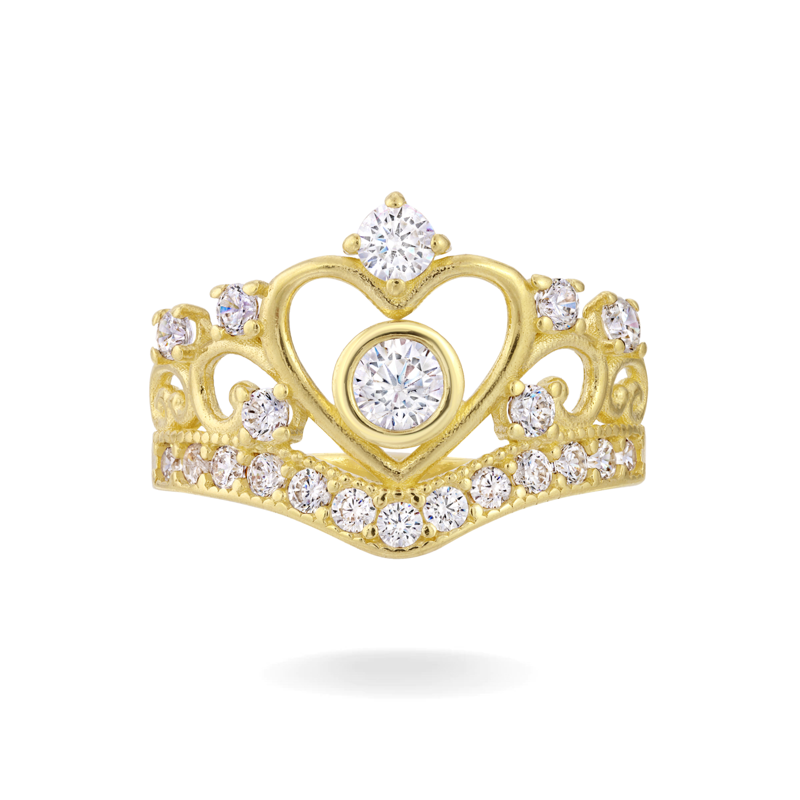 14K YELLOW GOLD PAVE HEART CROWN RING