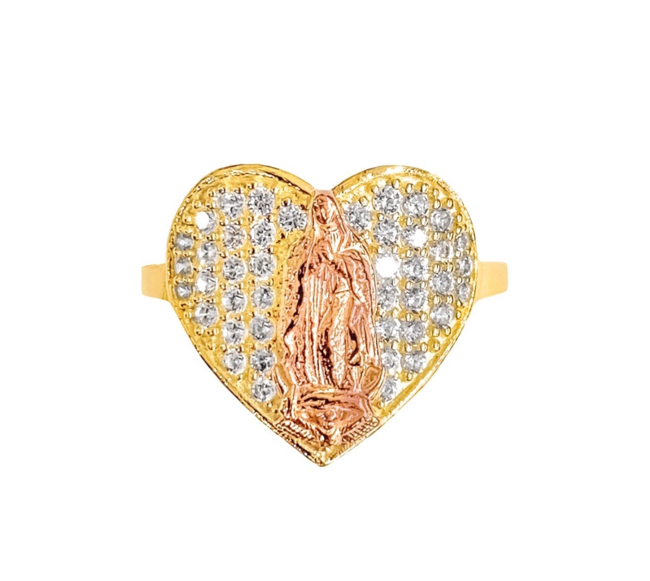 14K YELLOW GOLD PAVE VIRGIN MARY HEART RING