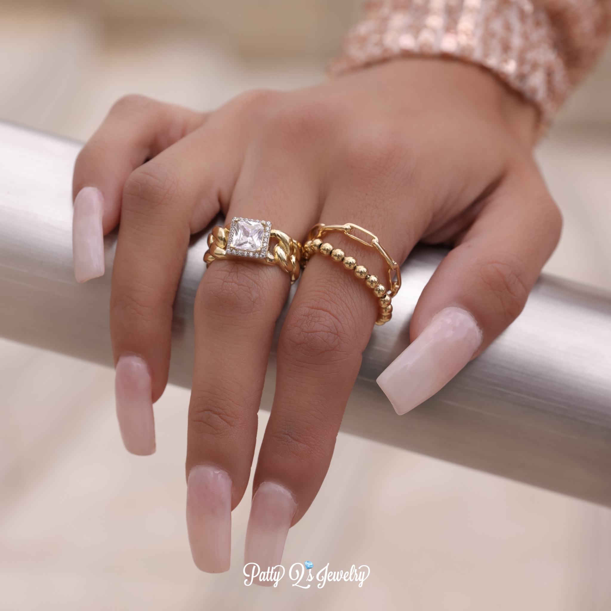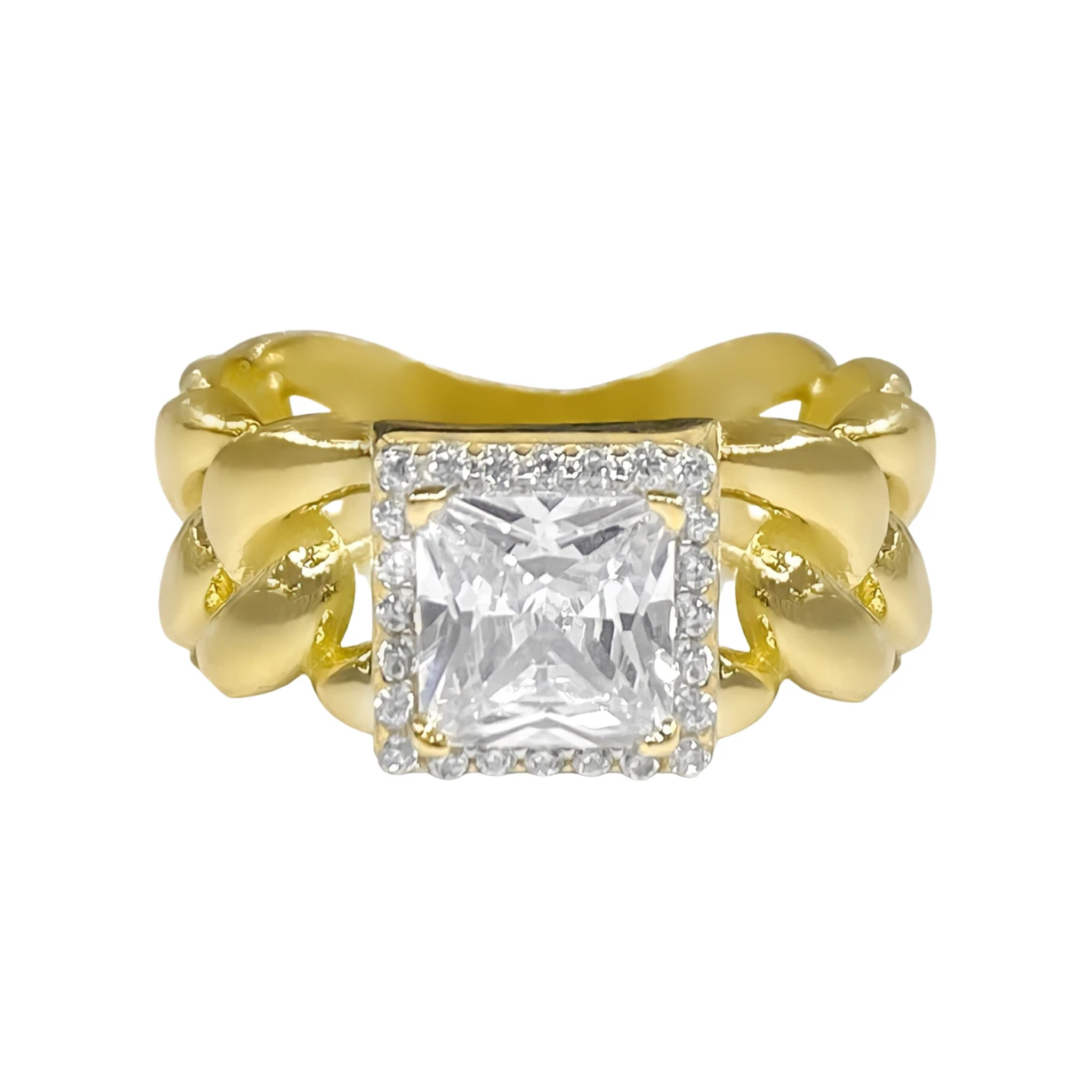 - 14K YELLOW GOLD SQUARE HALO PAVE CUBAN RING