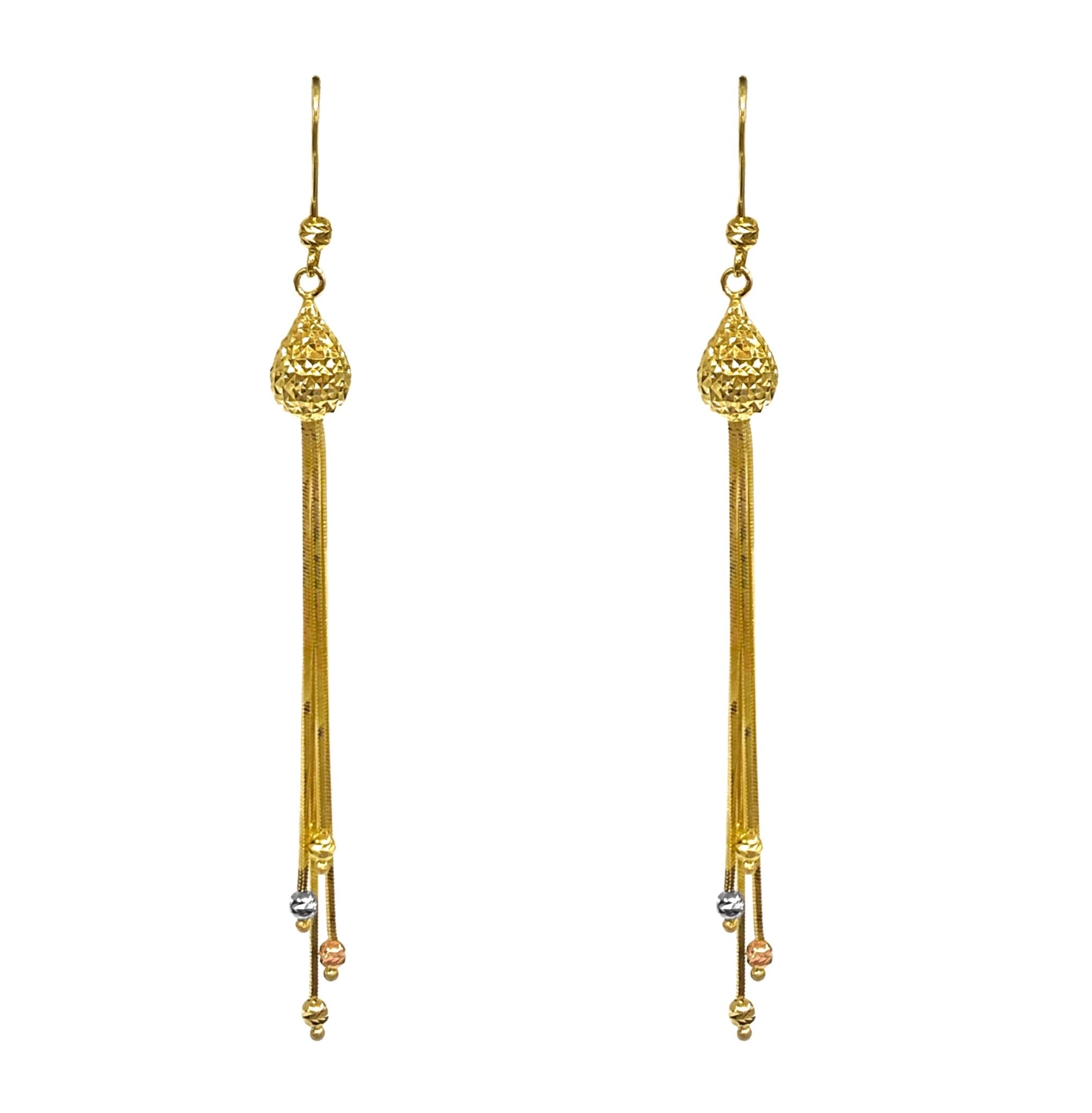 - 14K TRI COLOR TEAR DISCO PEAR DROP EARRINGS
