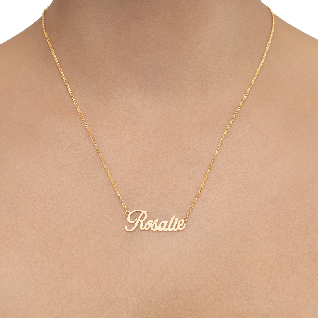 - Handmade name attached to our best-selling 1.5MM Spiga chain