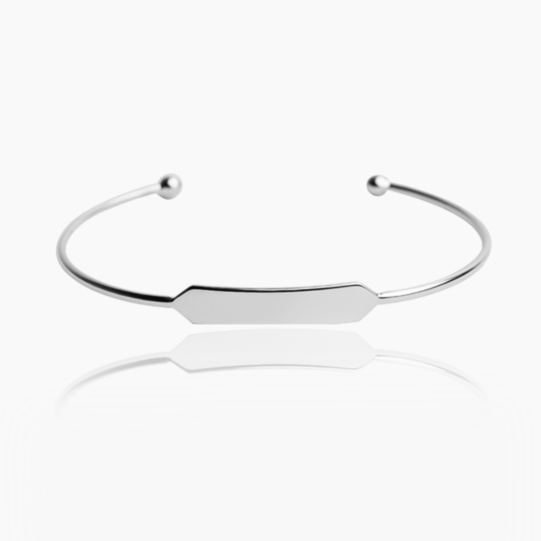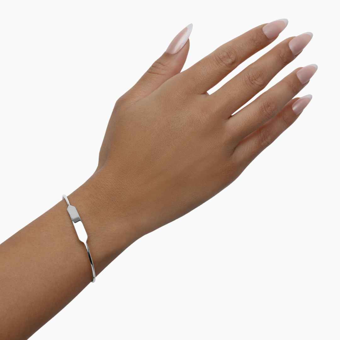 14K WHITE GOLD FELICIA ID OPEN END BANGLE -PERSONALIZED