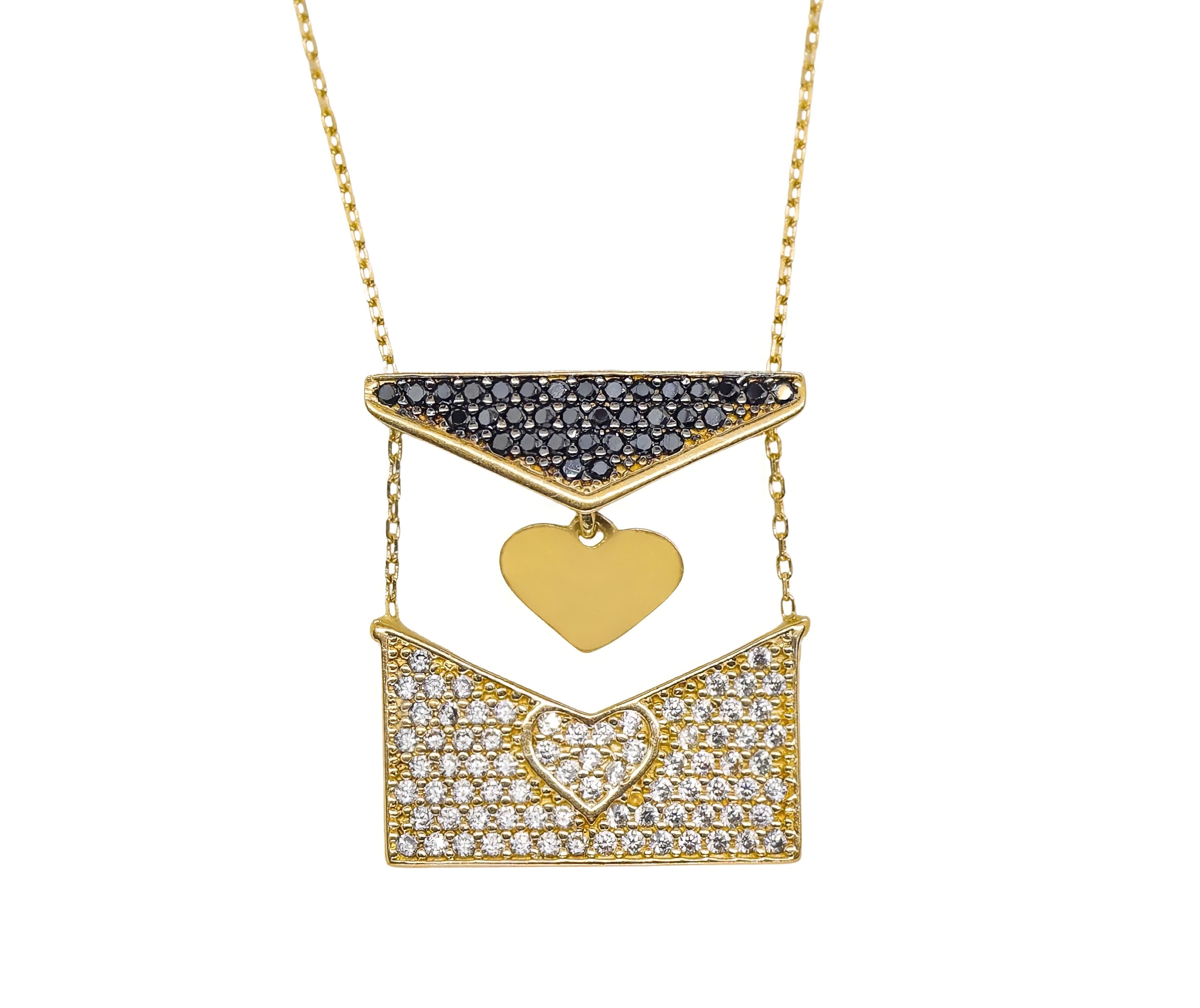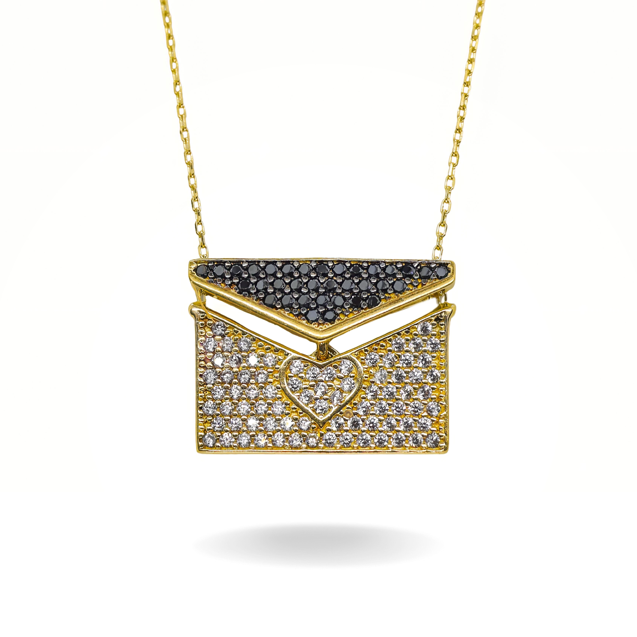 14K YELLOW GOLD PAVE BLACK + WHITE PURSE NECKLACE