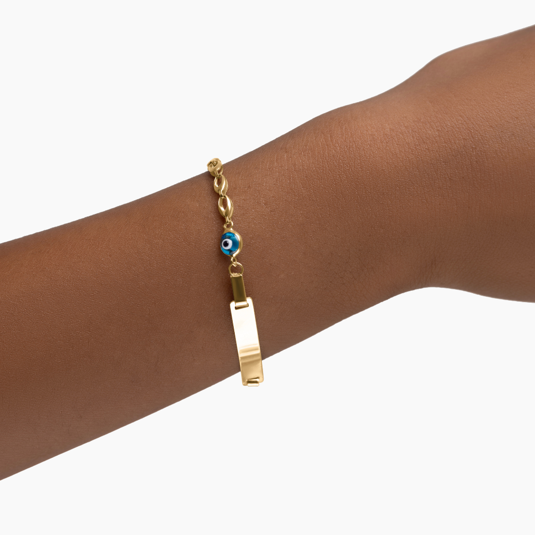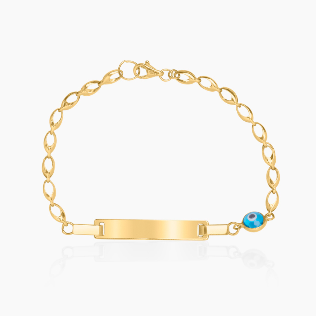 14K YELLOW GOLD SHELL BEADS + EYE CHILDREN'S ID BRACELET
