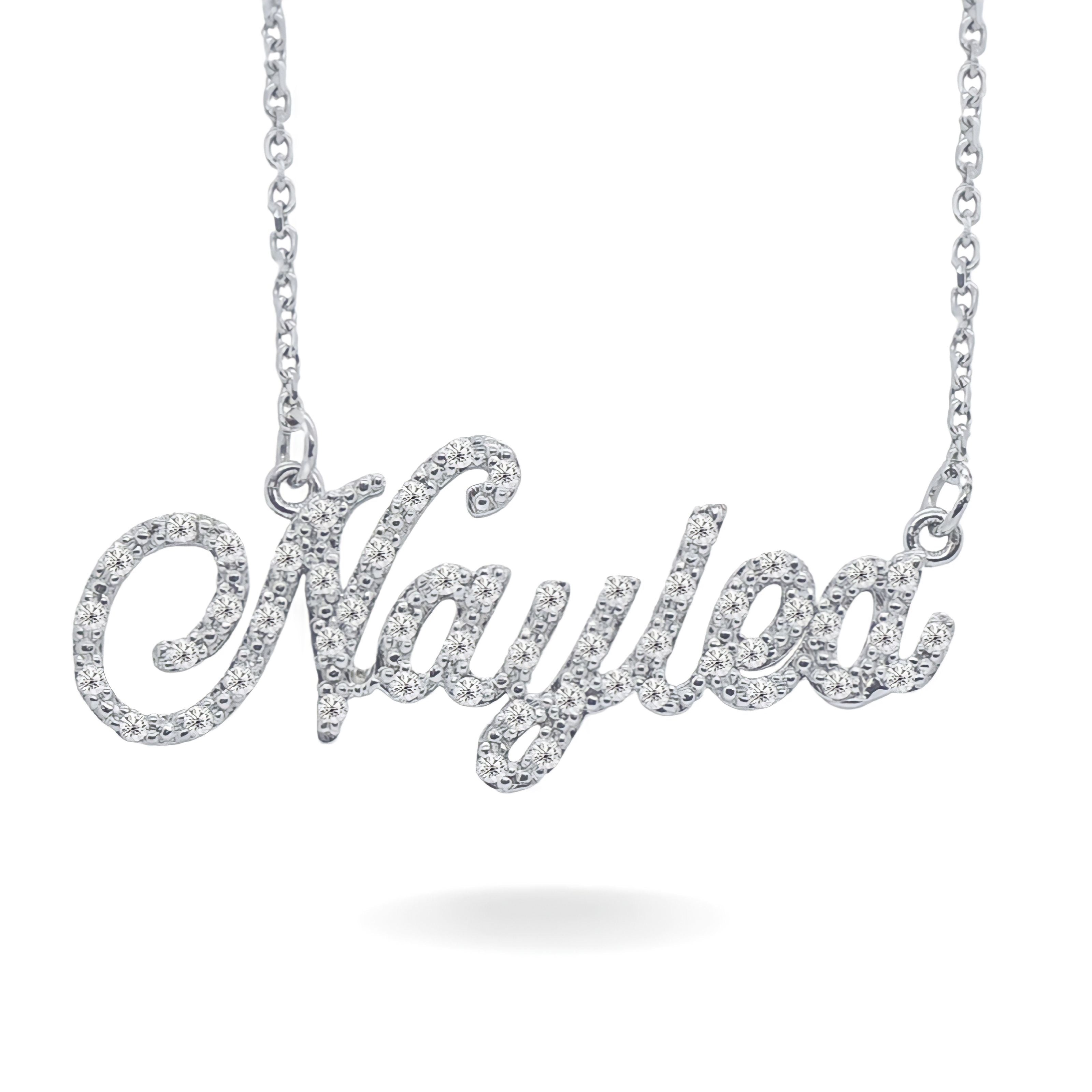 14K WHITE GOLD ILLUSION-SET DIAMOND FLOATING SCRIPT NAME NECKLACE