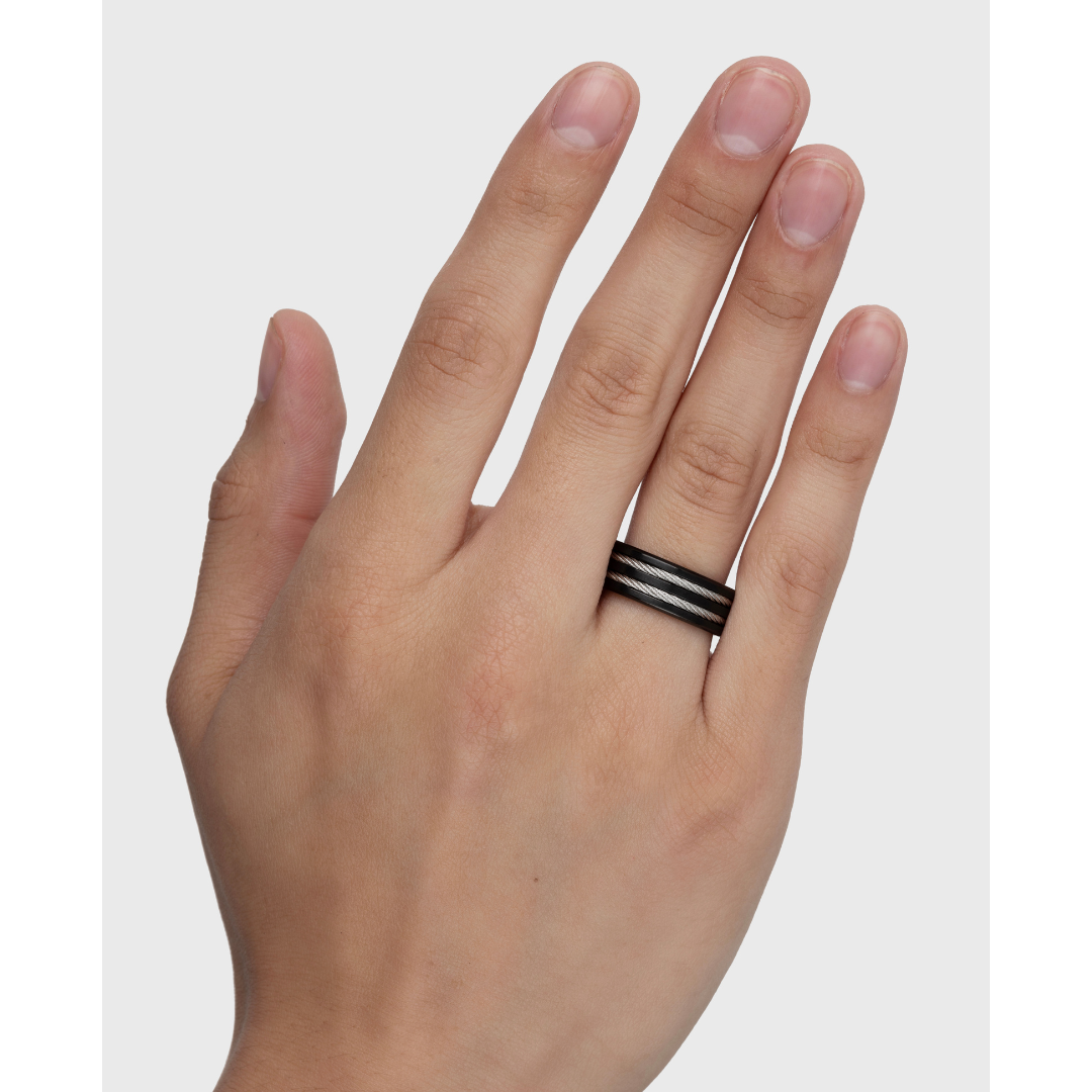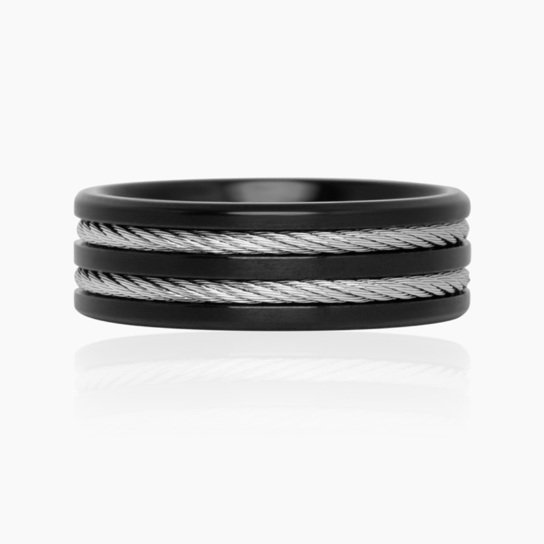 TUNGSTEN BLACK BRUSHED DOUBLE CHROME ROPE RING -8MM
