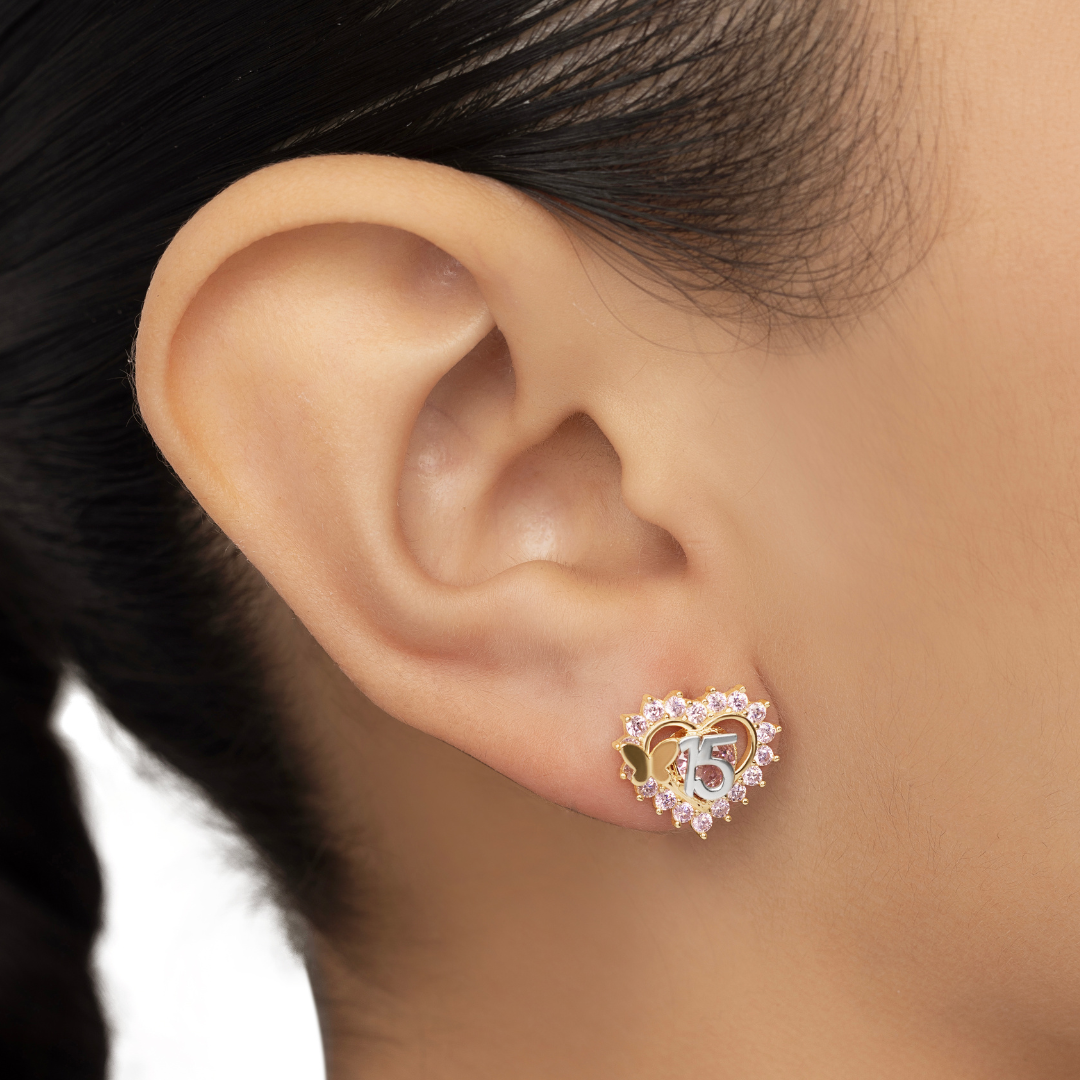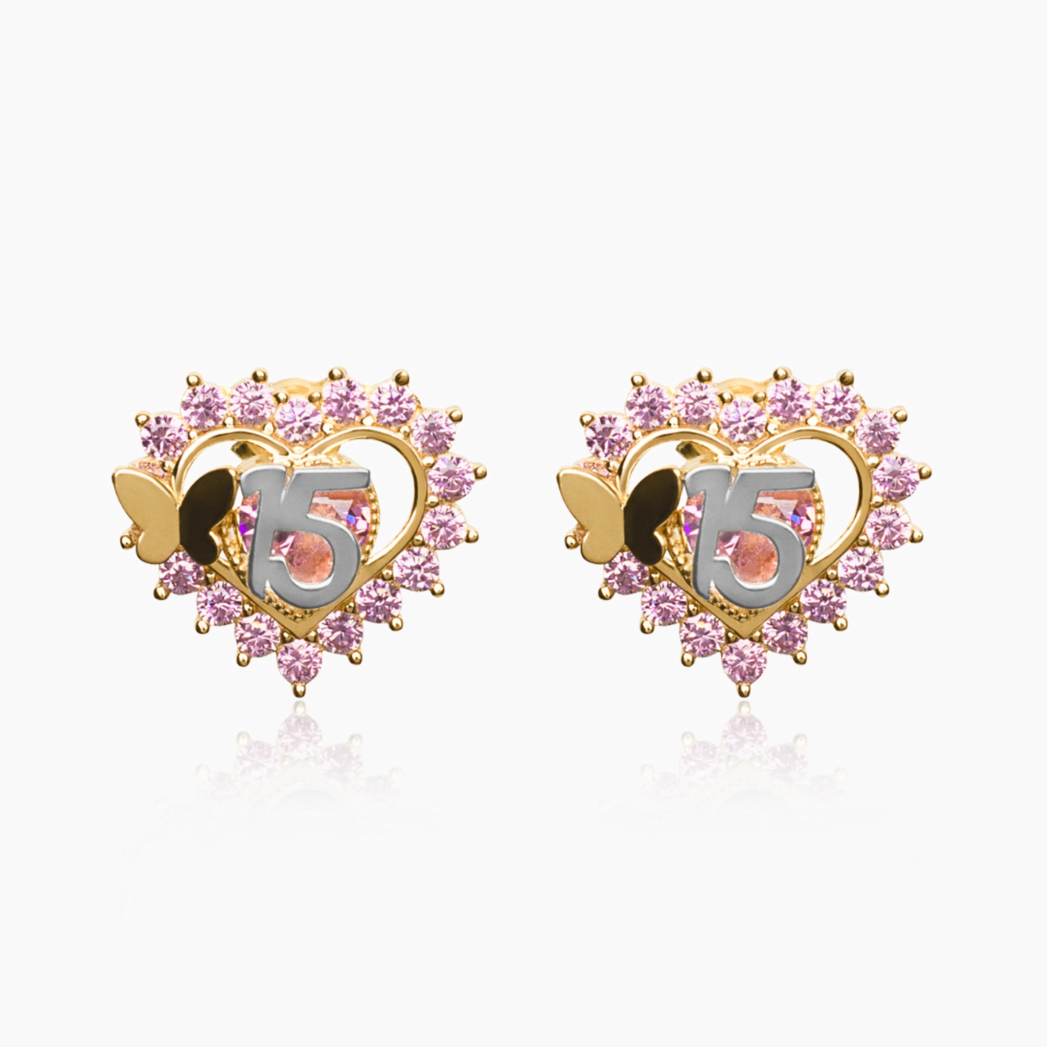14K YELLOW GOLD MARIPOSA AMOR 15 EARRINGS -PINK