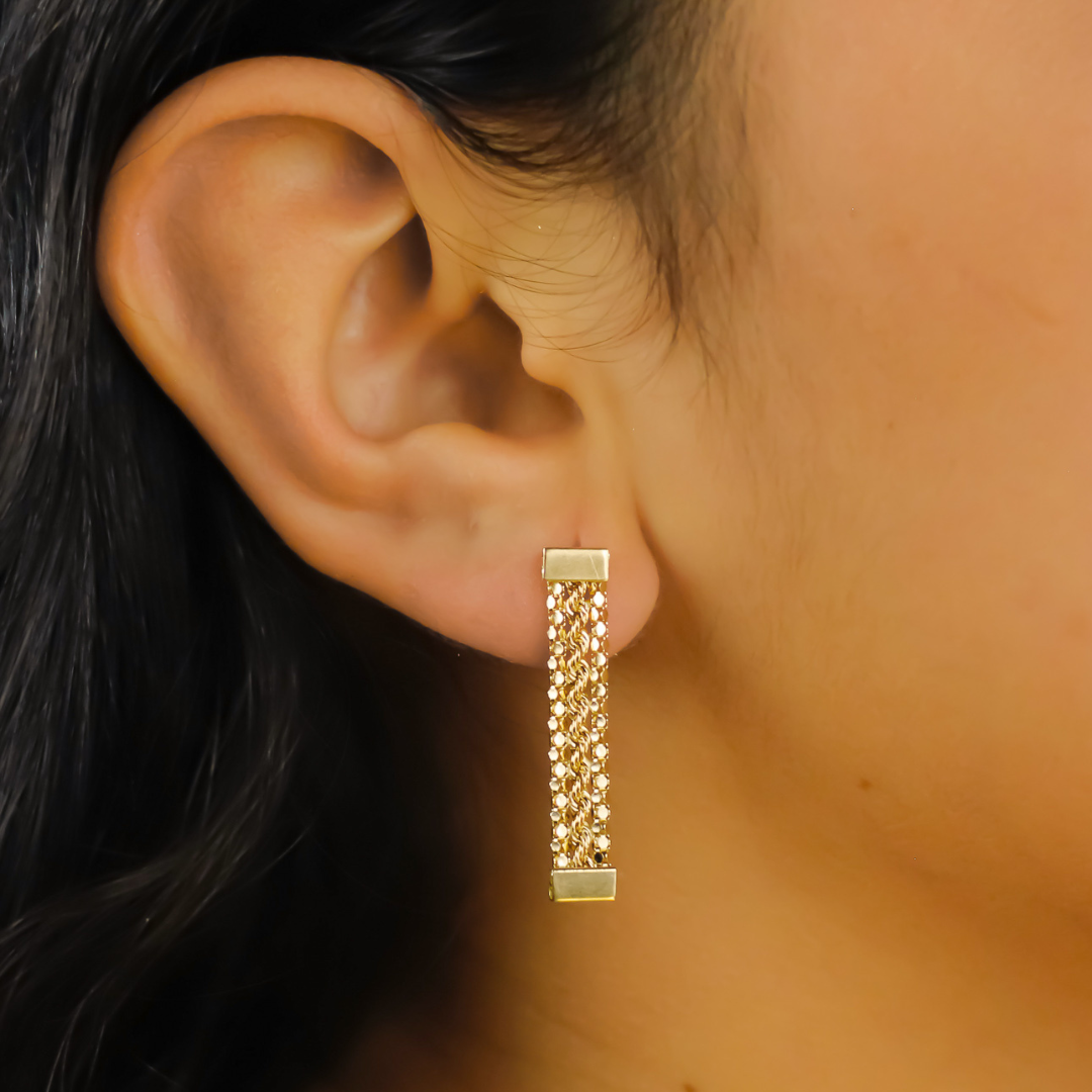 14K YELLOW GOLD DROP BARS BEADED EARRINGS