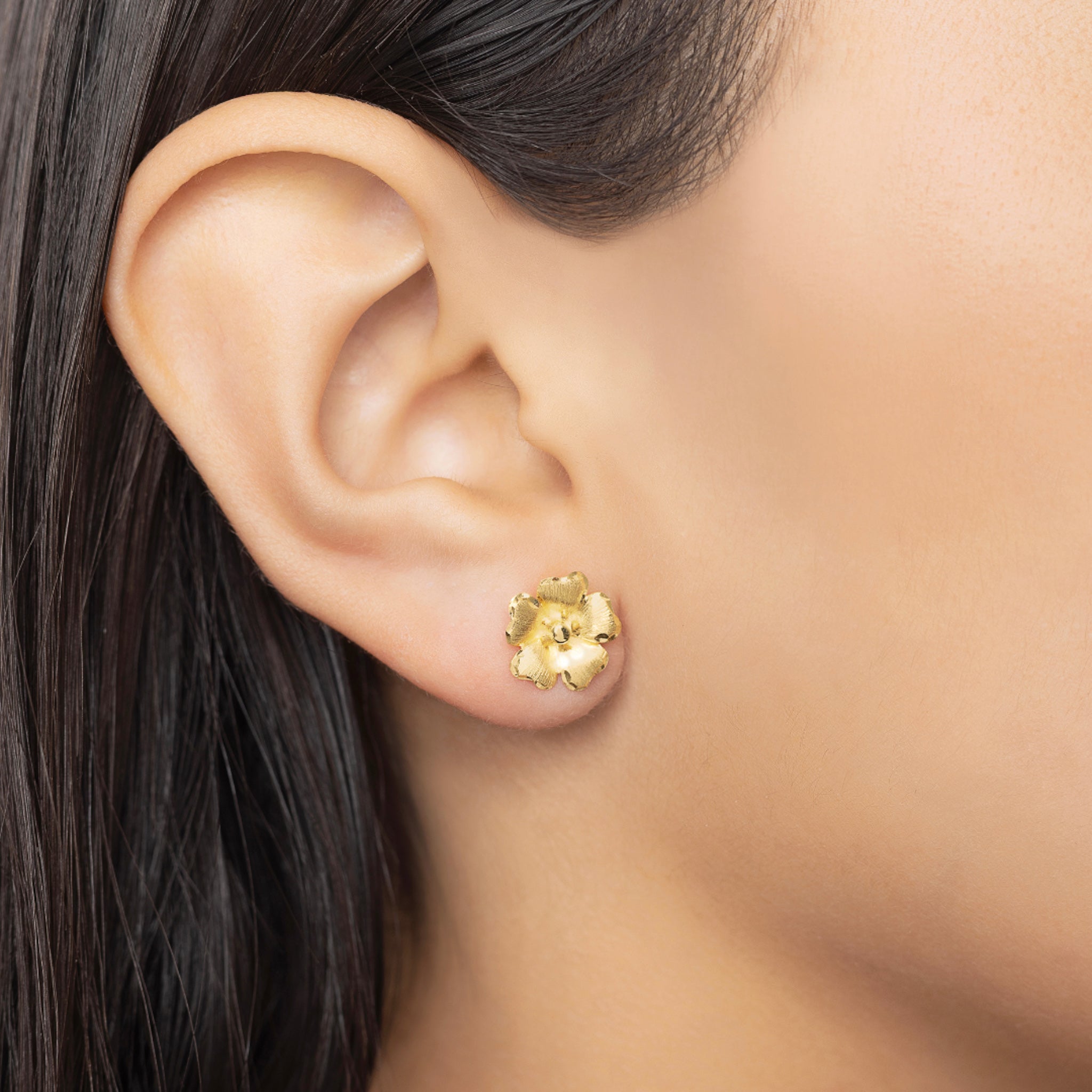 14K YELLOW GOLD CAMELLIA FLOWER STUDS
