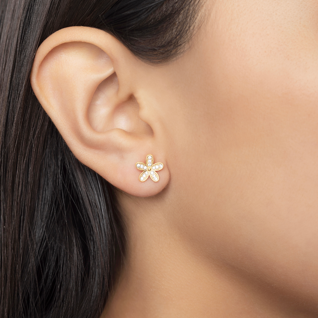 14K YELLOW GOLD ZANIA PAVE FLOWER STUDS