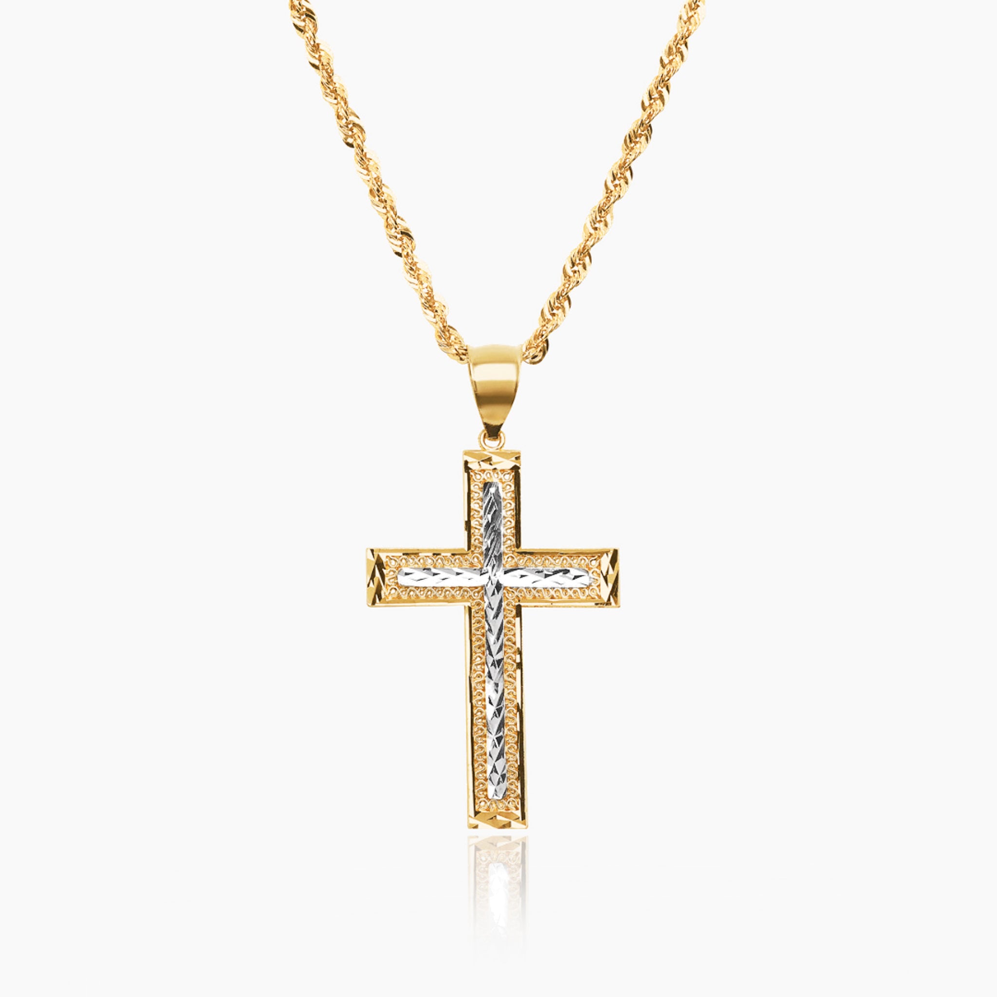 14K TWO TONED GOLD JOSHUA ROUNDED CROSS NECKLACE