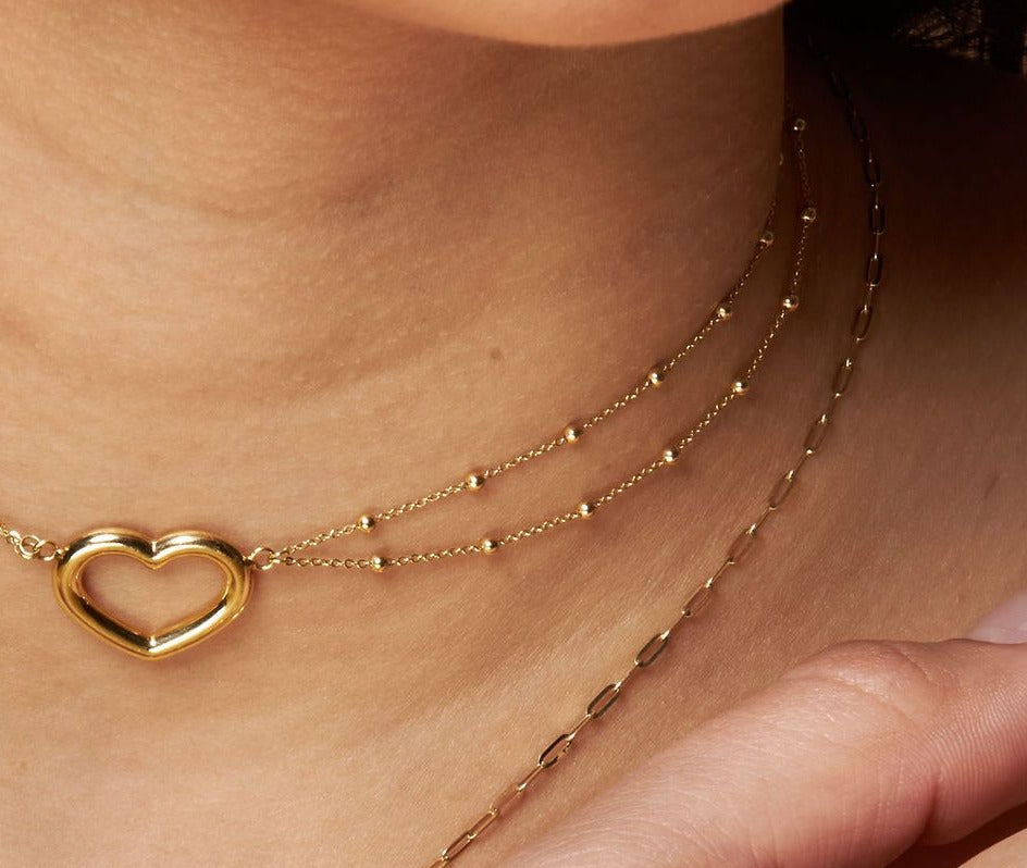 10K YELLOW GOLD DRAPED HEART CHOKER NECKLACE