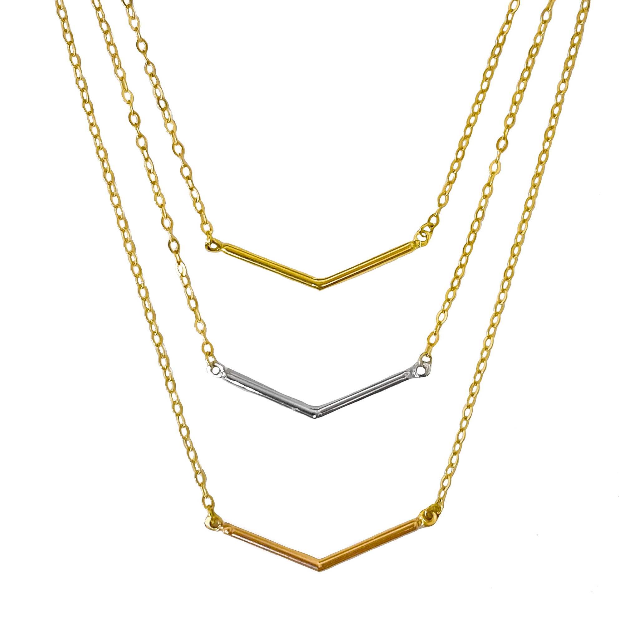 10K YELLOW GOLD TRIPLE LAYER TRI COLOR V NECKLACE