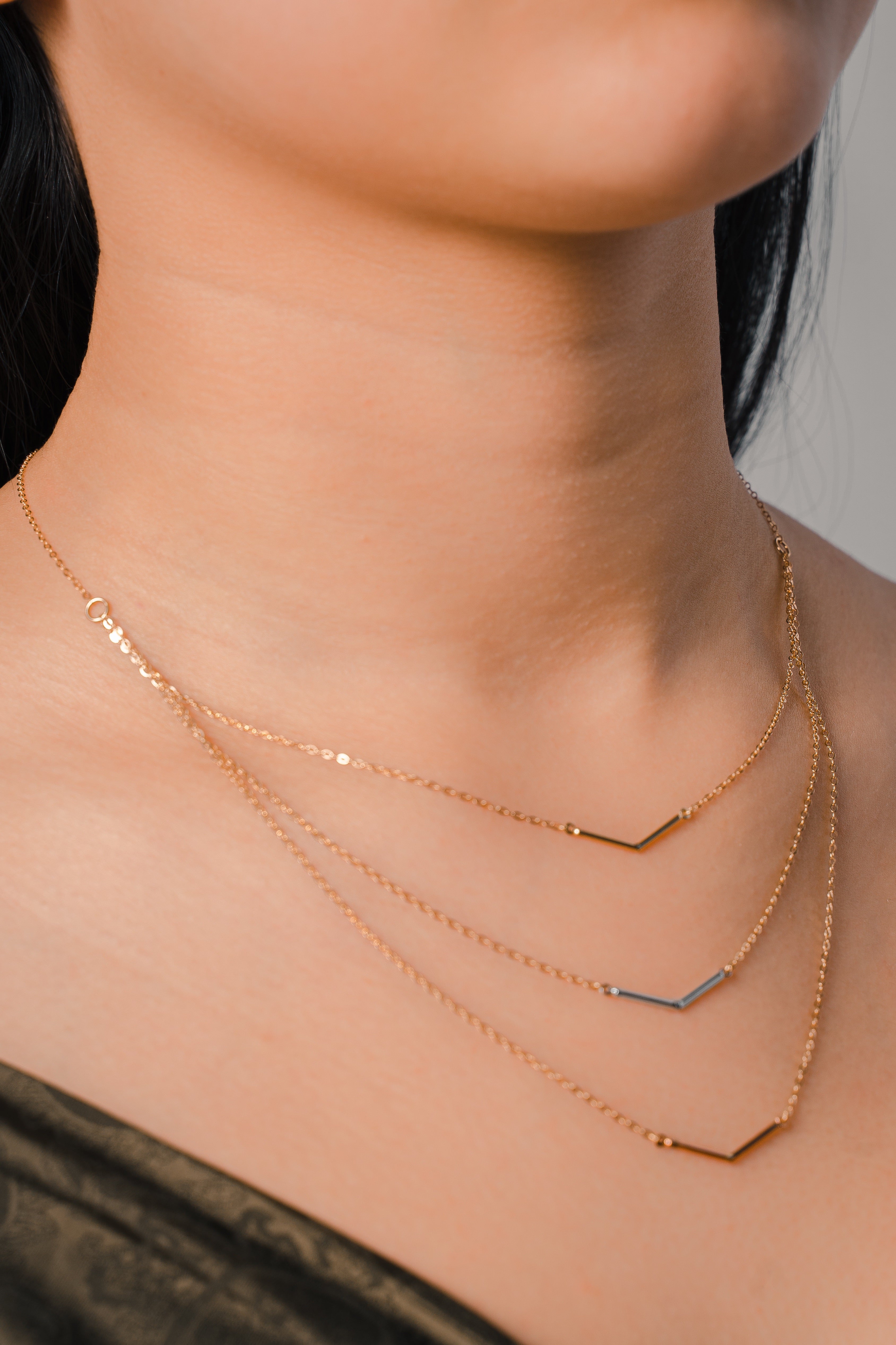 - 10K YELLOW GOLD TRIPLE LAYER TRI COLOR V NECKLACE