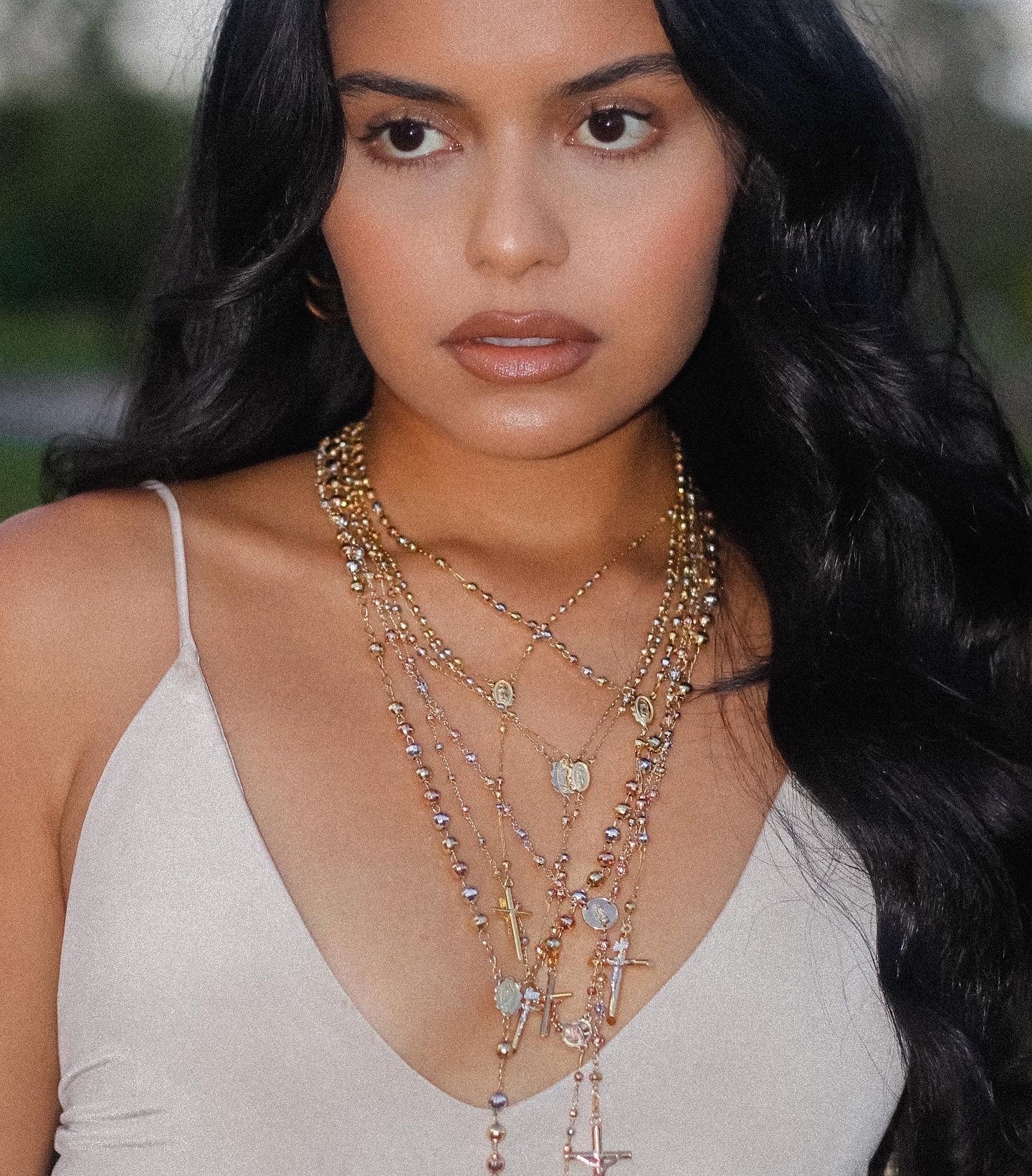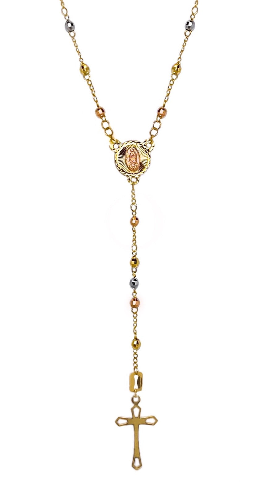 14K TRI COLOR GOLD DISCO BALL VIRGIN MARY ROSARY -3MM