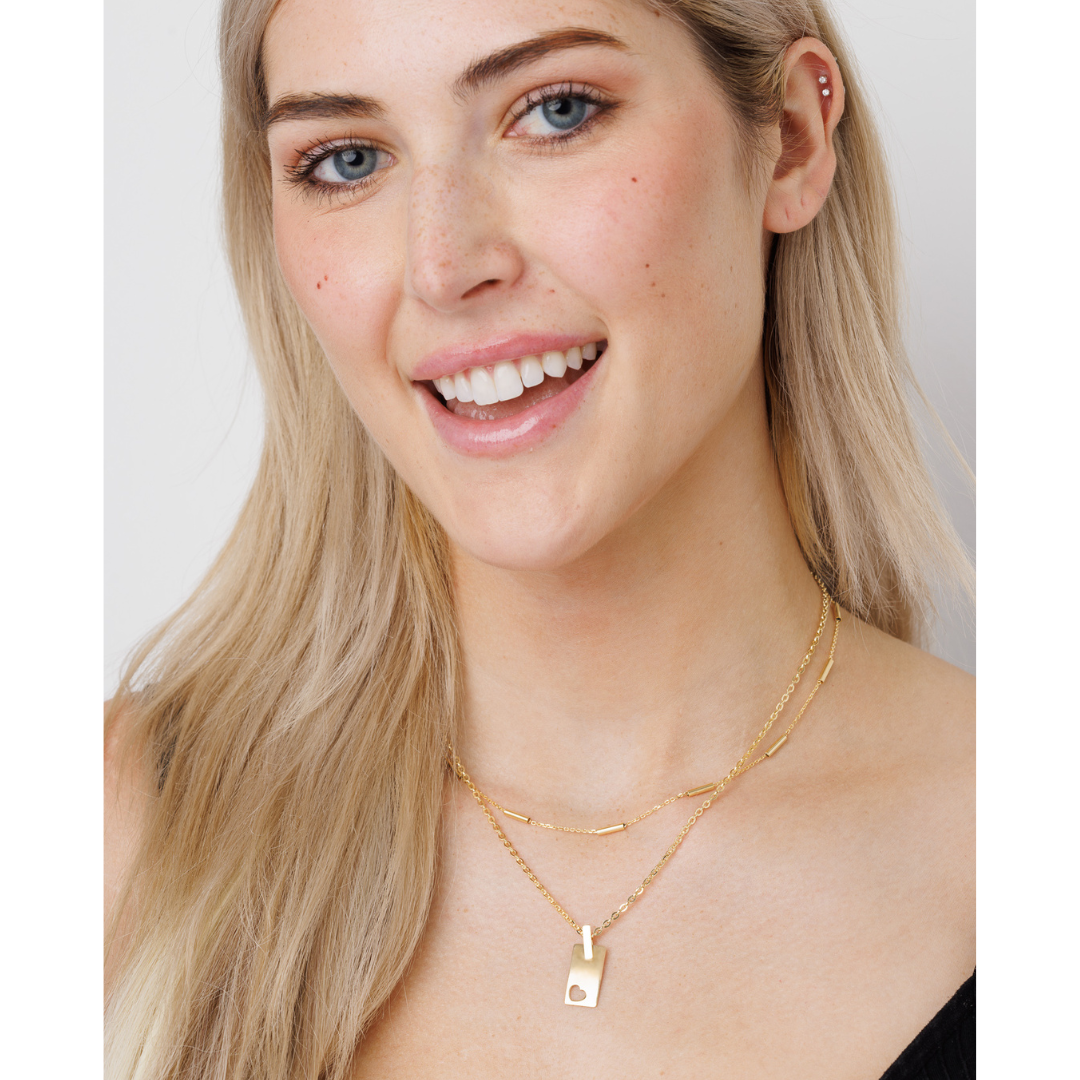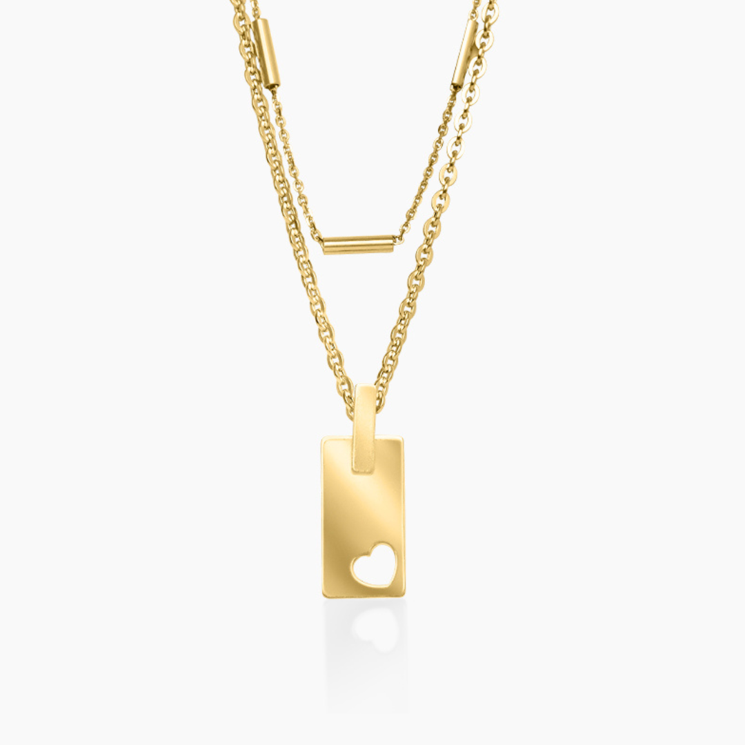 14K YELLOW GOLD STACKED DARLING TAG PENDANT NECKLACE