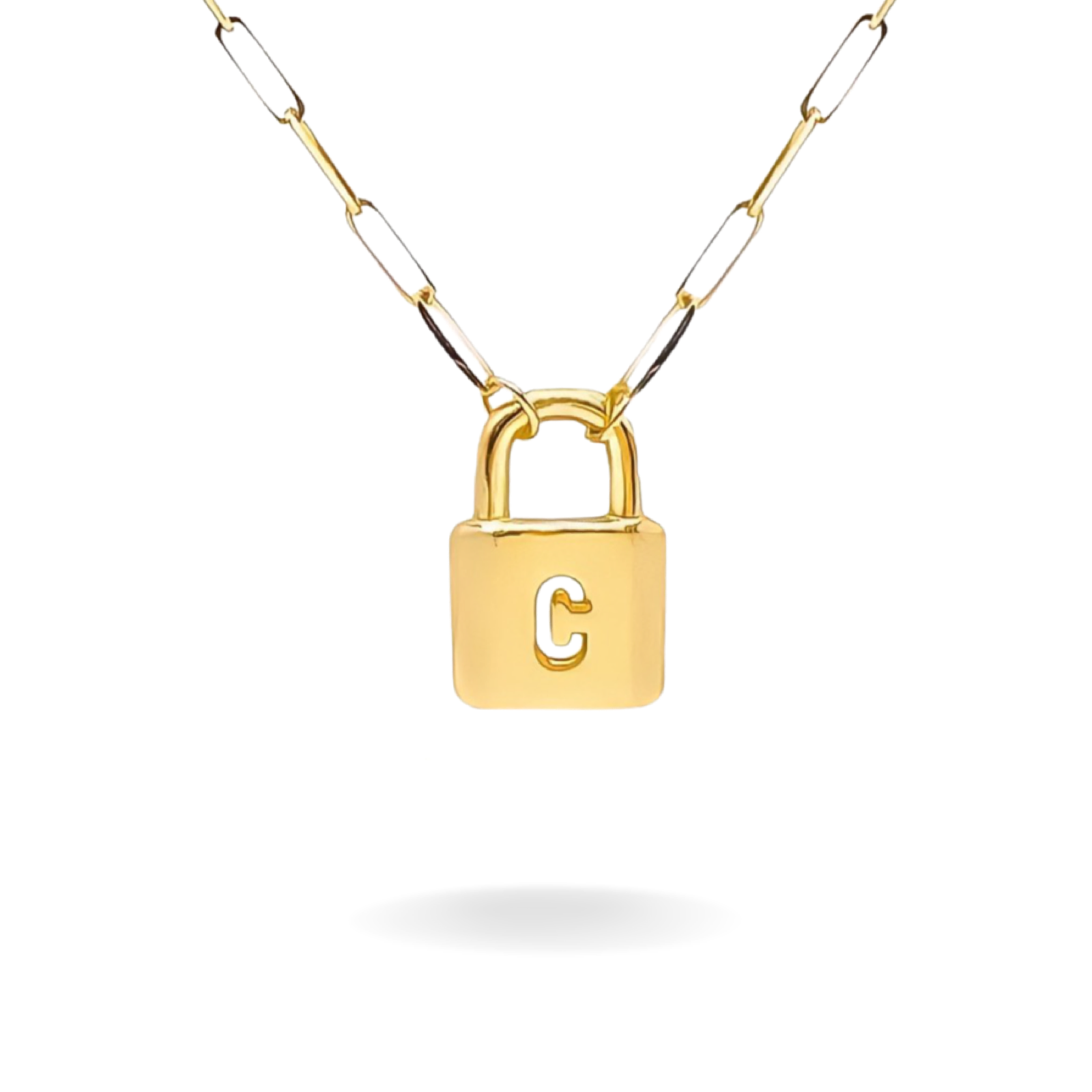14K YELLOW GOLD SERIF INITIAL LOCK PAPERCLIP NECKLACE