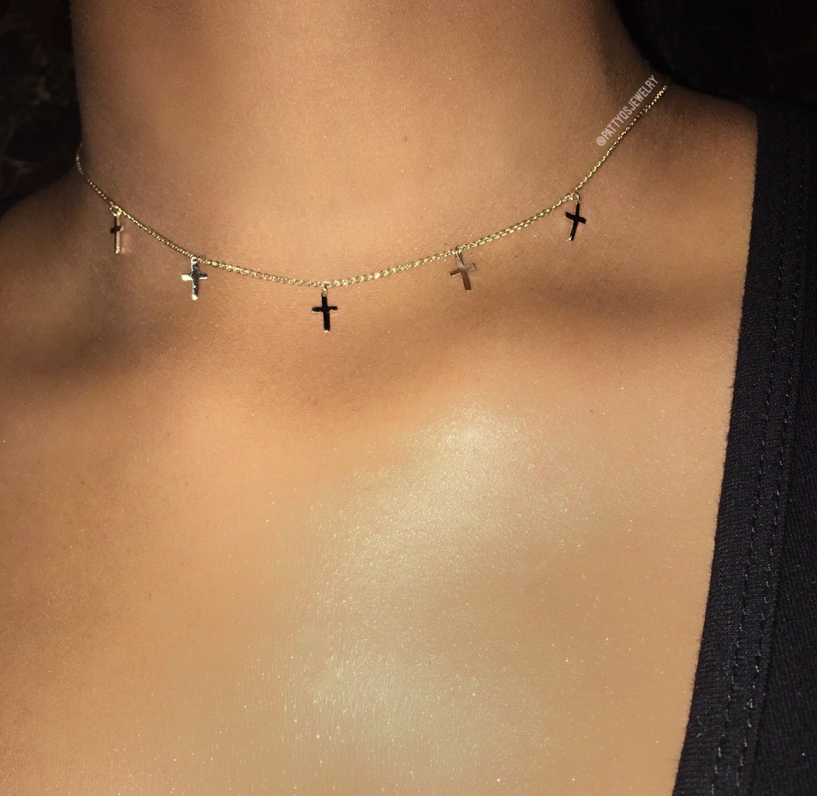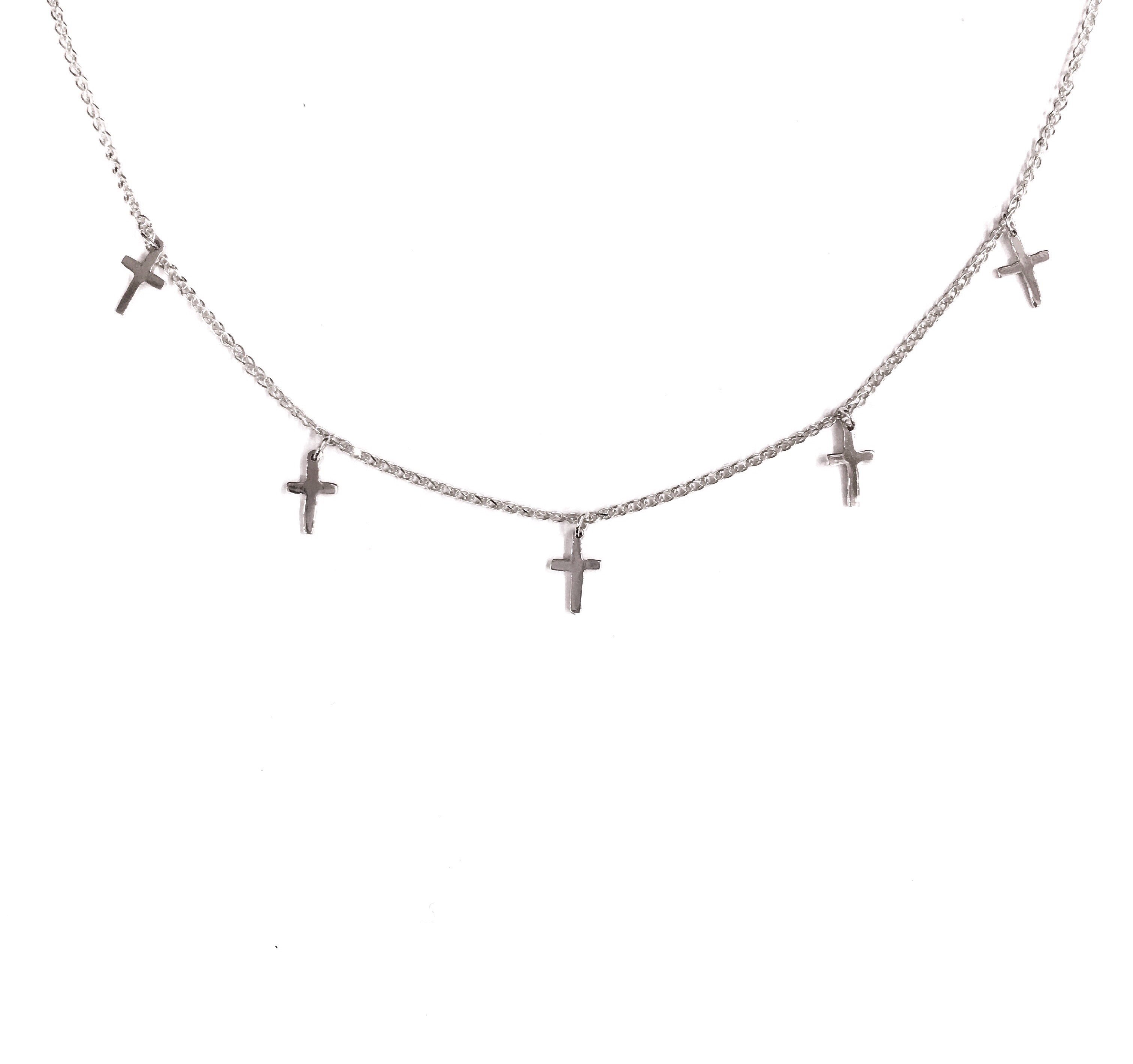 5 solid gold crosses attached to our best-selling Spiga chain