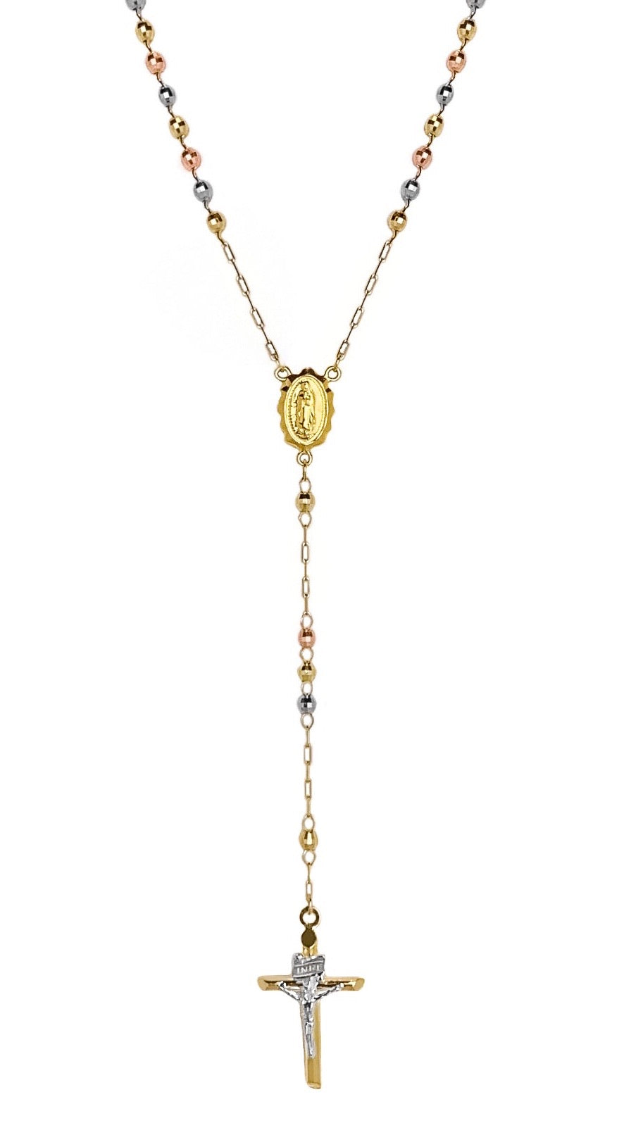 14K TRI COLOR GOLD DISCO BALL INRI ROSARY -3MM
